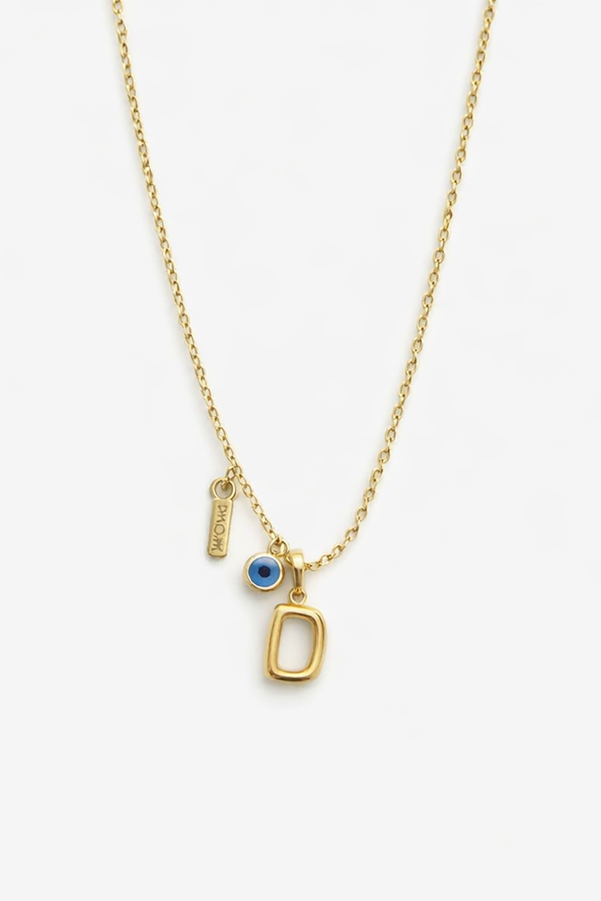 Altın Renk D Harfli Nazar Boncuk Detaylı Çelik Kolye