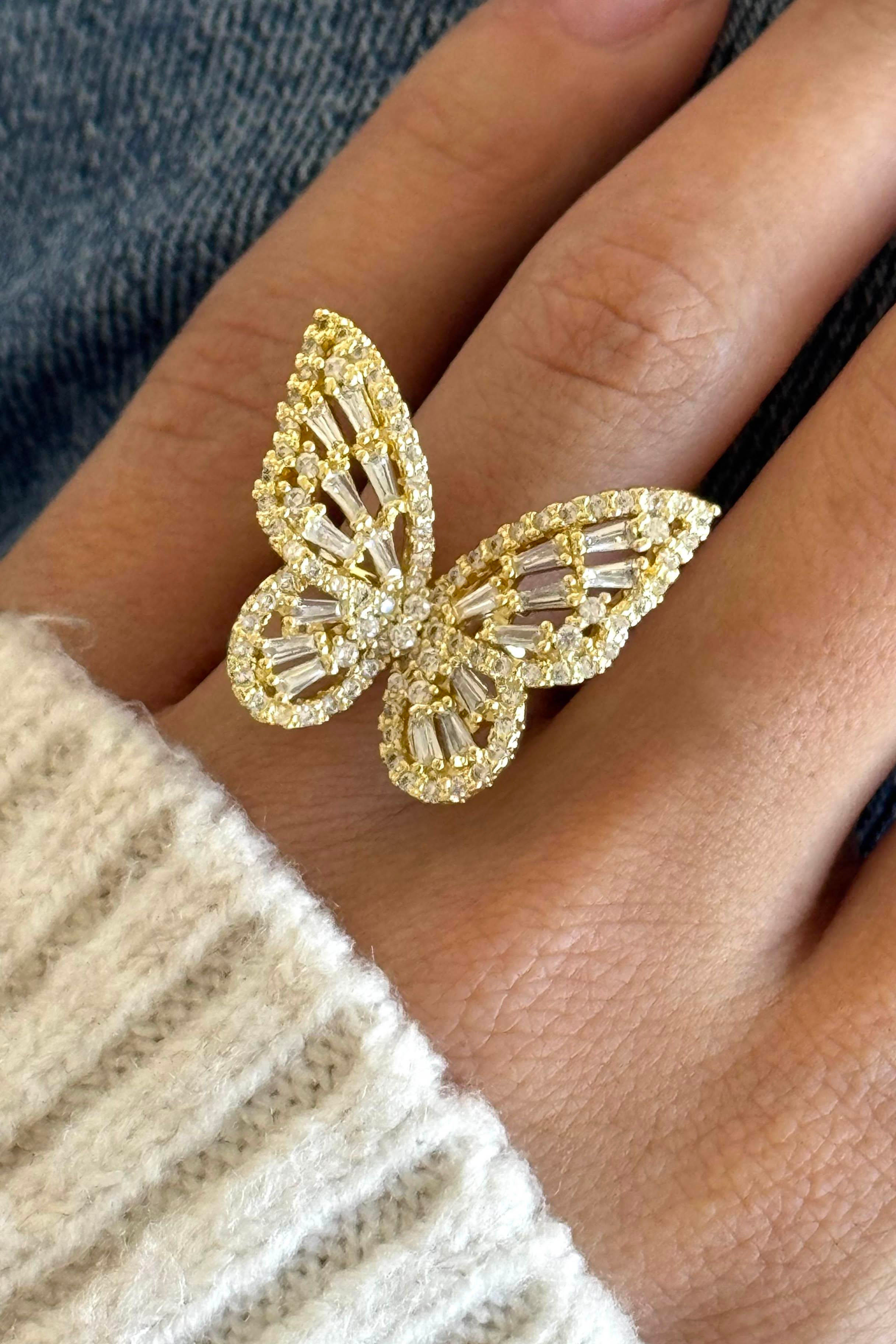 Altın Renk Kelebek Figürlü Ayarlanabilir Çelik Yüzük