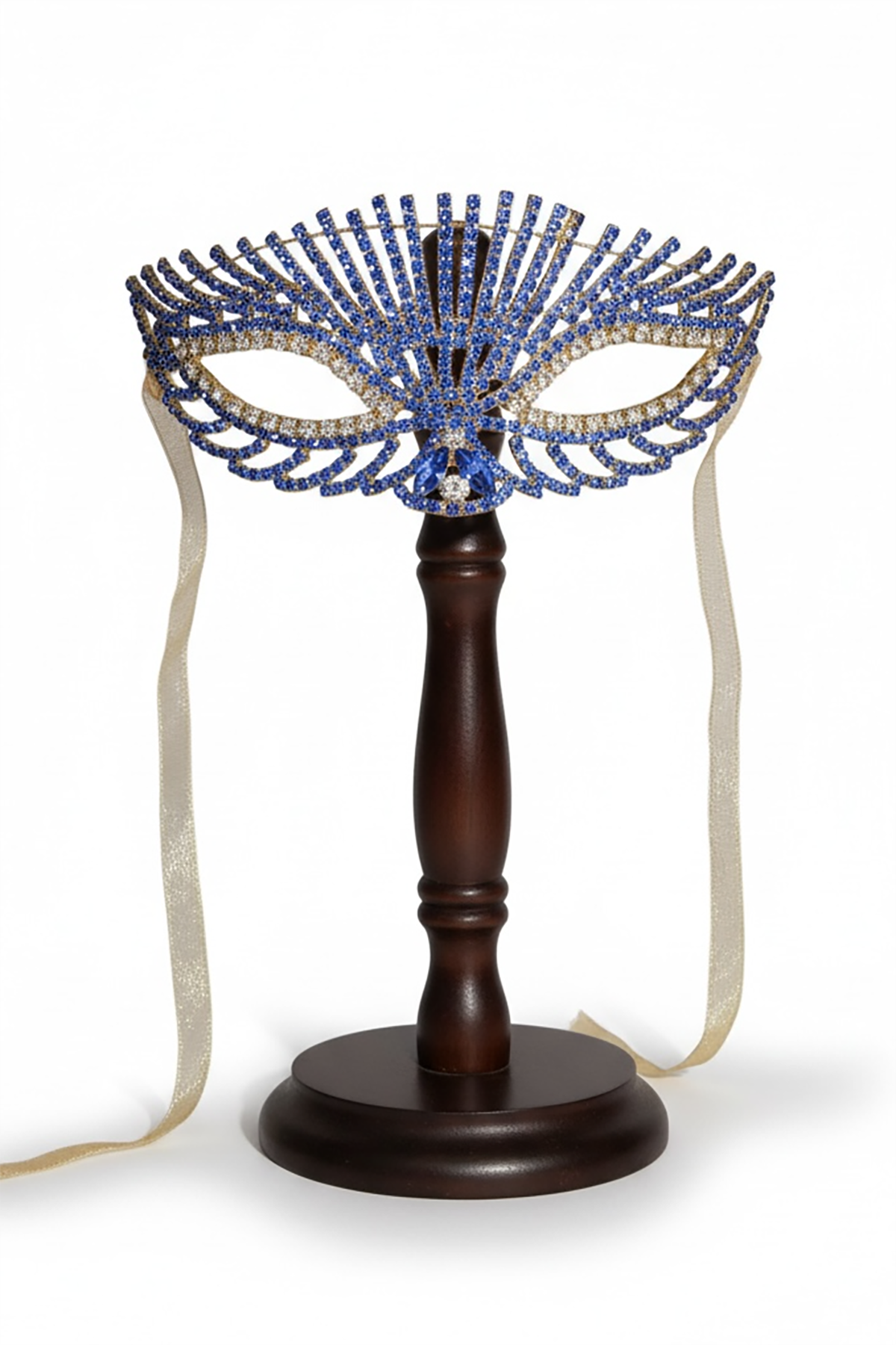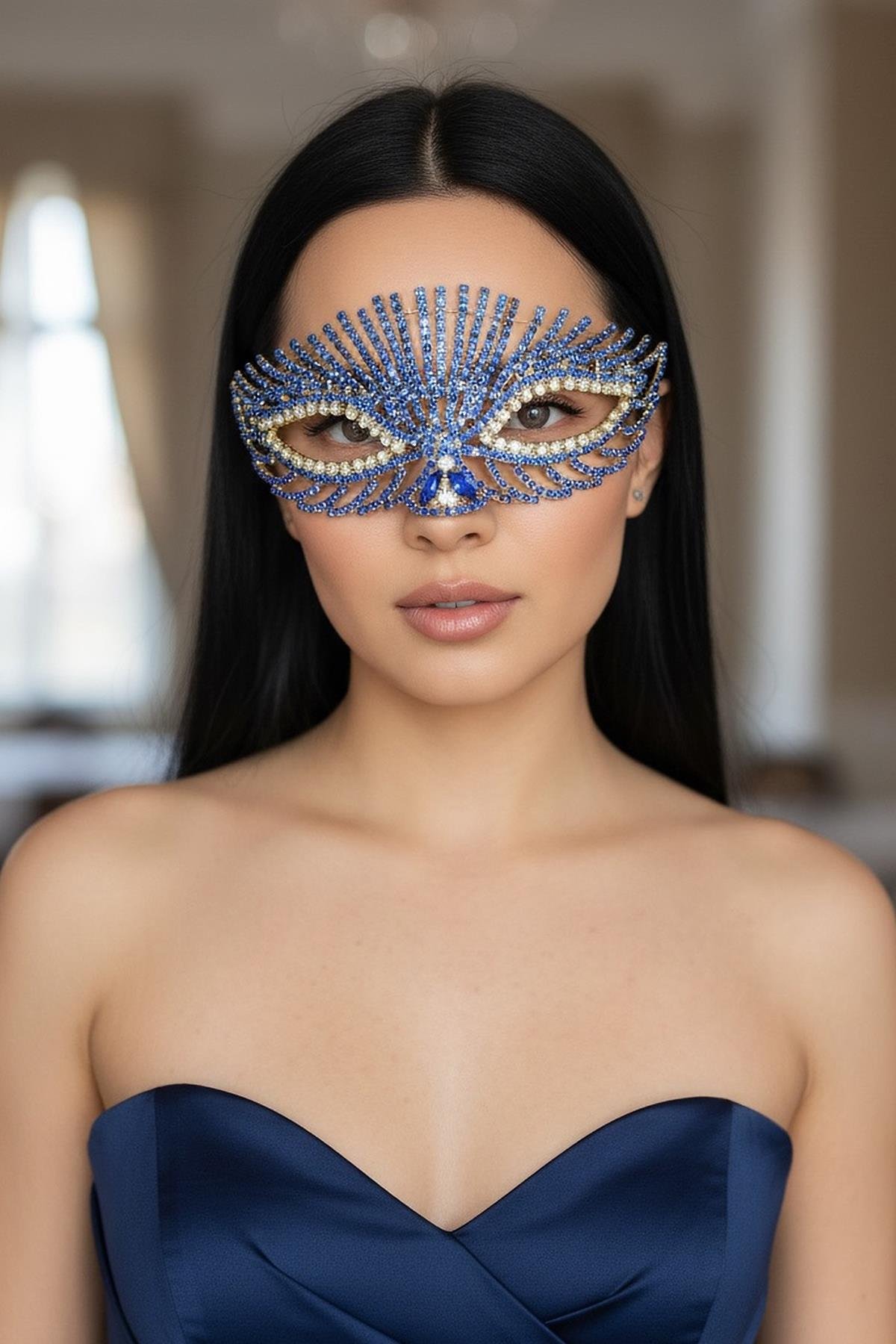 Altın Renk Mavi Taş Detaylı Tasarım Parti Maskesi
