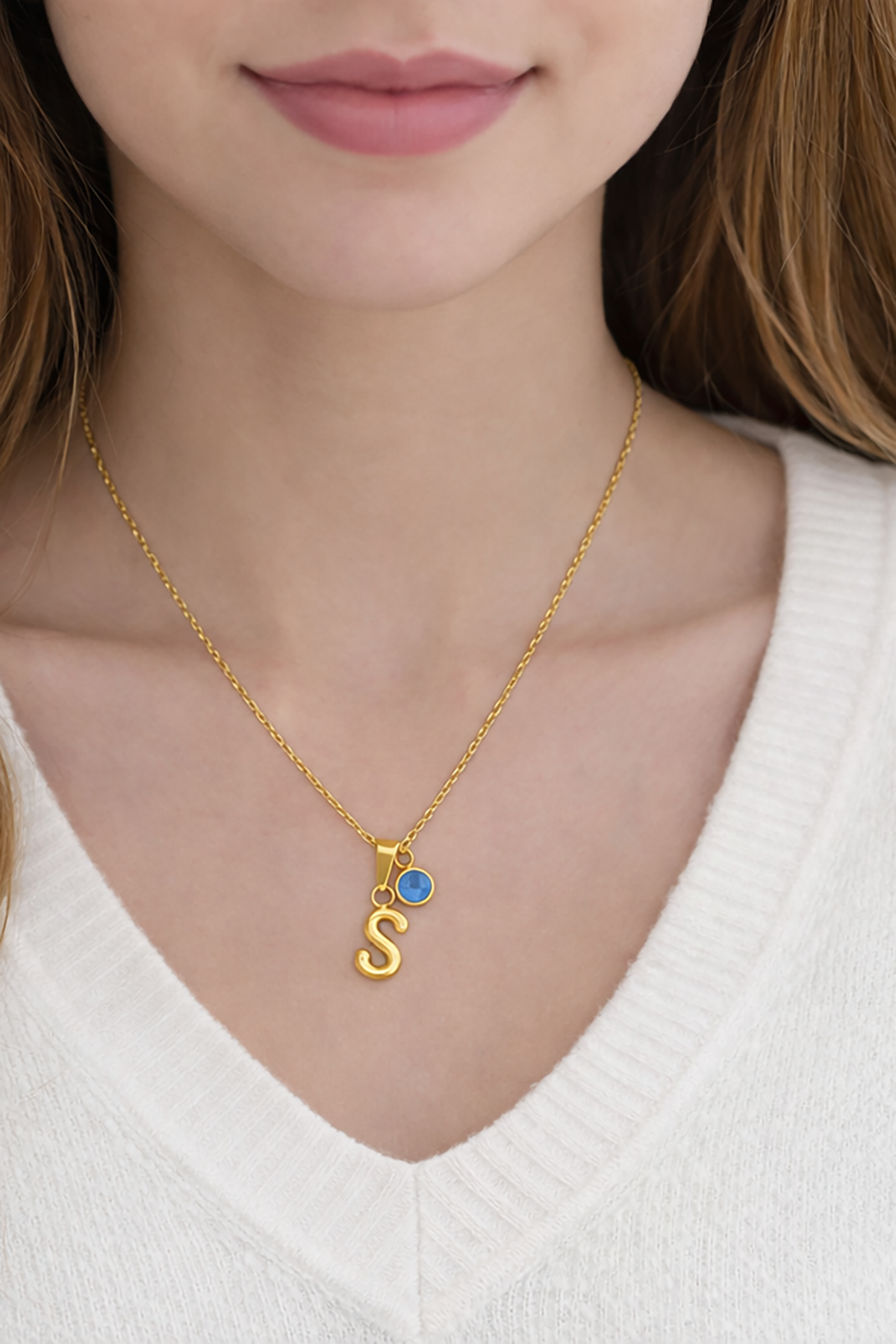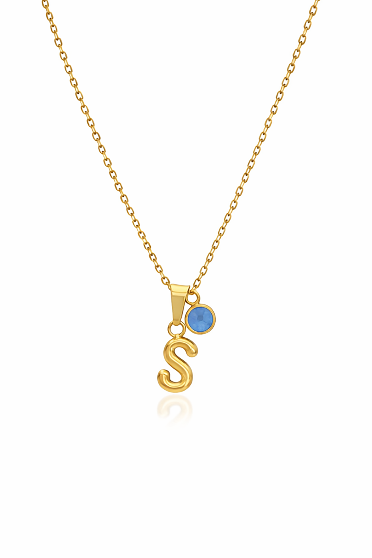 Altın Renk S Harfli Nazar Boncuk Detaylı Çelik Kolye
