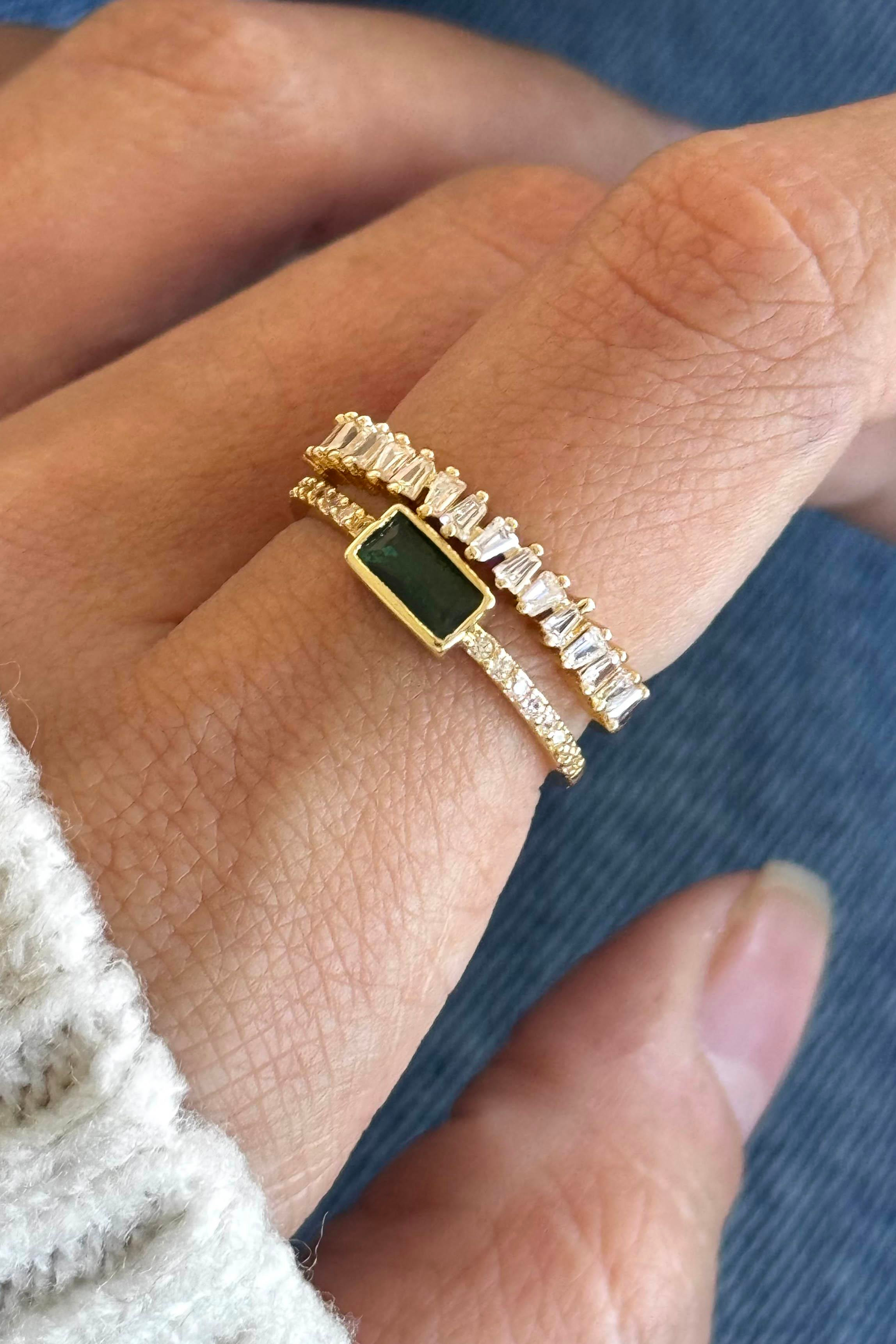 Altın Renk Yeşil Taş Detaylı Ayarlanabilir Çelik Yüzük