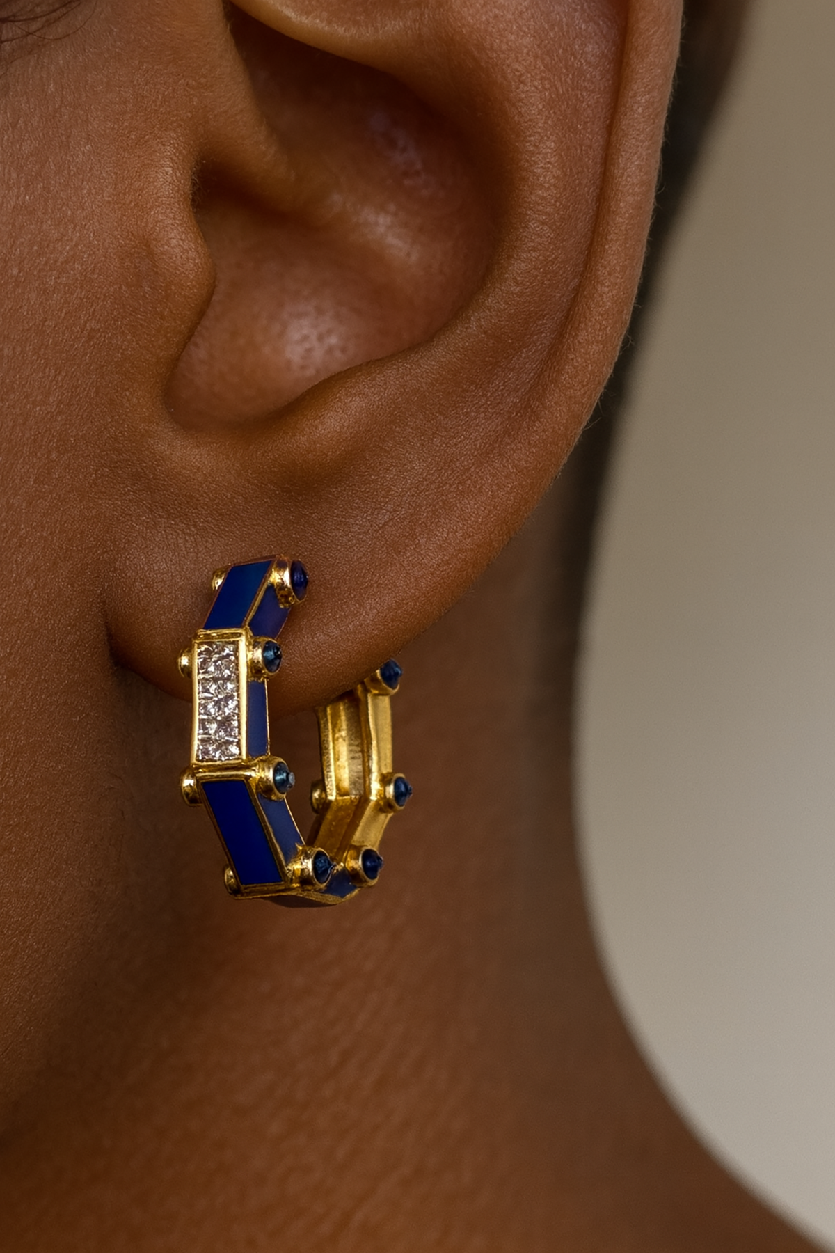 Altın Ve Mavi Renk Taş Detaylı YSX Küpe (Çift)