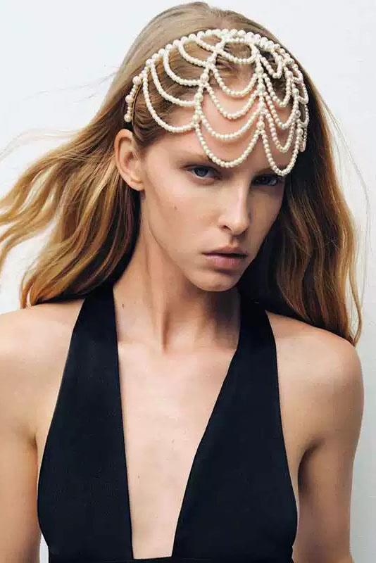 Beyaz Renk İnci Detaylı Gelin/Kına/Nişan/Bride Tasarım Taç
