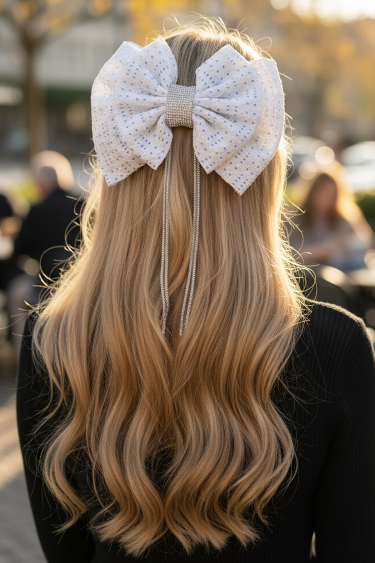 Beyaz Ve Mavi Renk Kurdele Figürlü Taş Detaylı  Otomat Toka