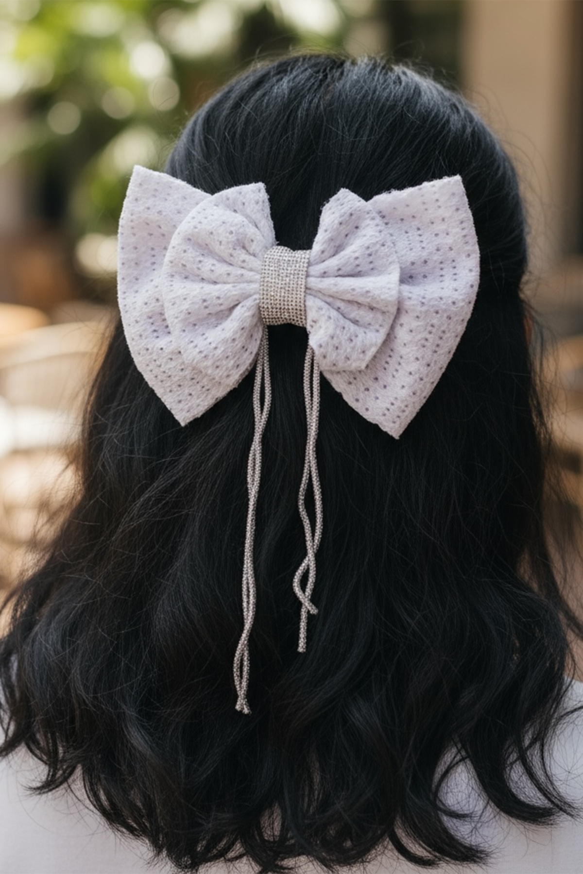 Beyaz Ve Mor Renk Kurdele Figürlü Taş Detaylı Otomat Toka
