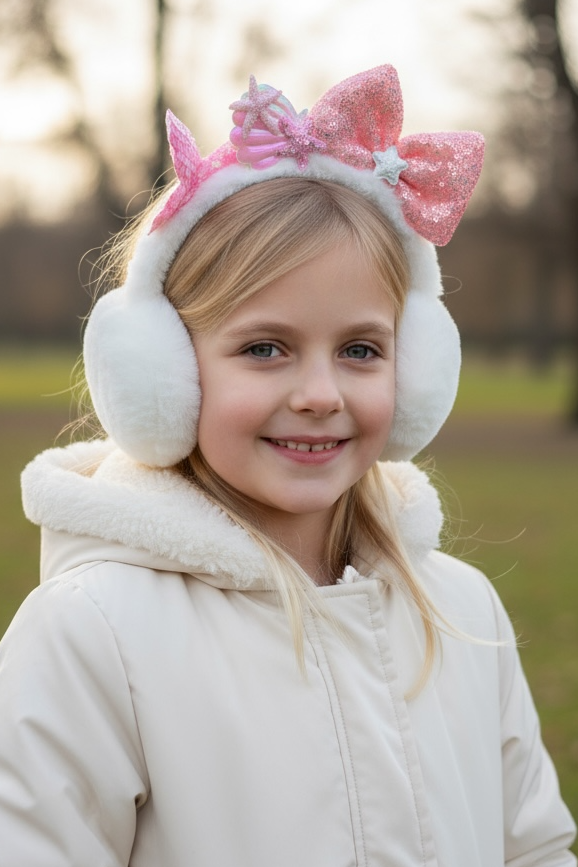 Beyaz Ve Pembe Renk Karışık Figürlü Peluş Kulaklık