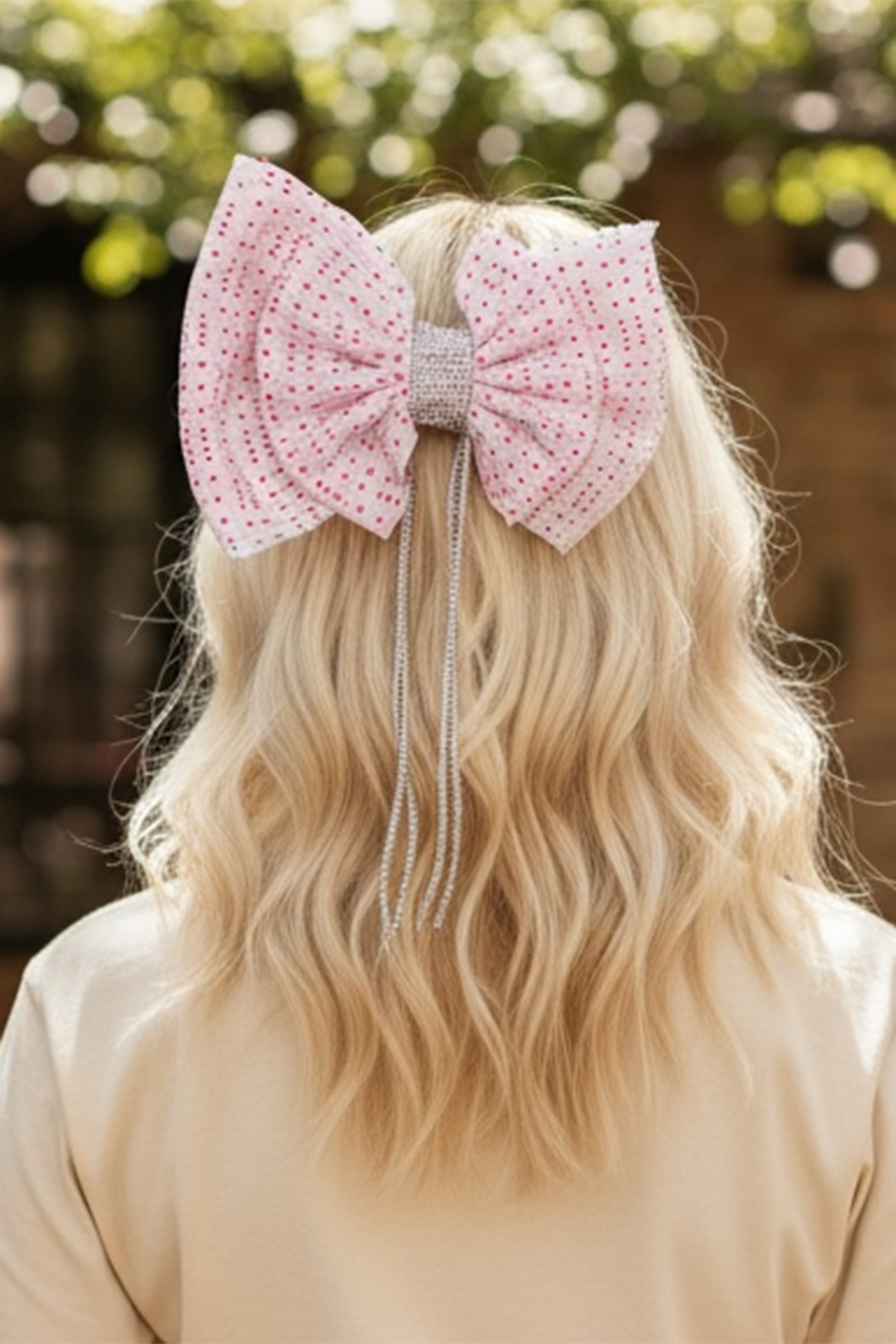 Beyaz Ve Pembe Renk Kurdele Figürlü Taş Detaylı Otomat Toka