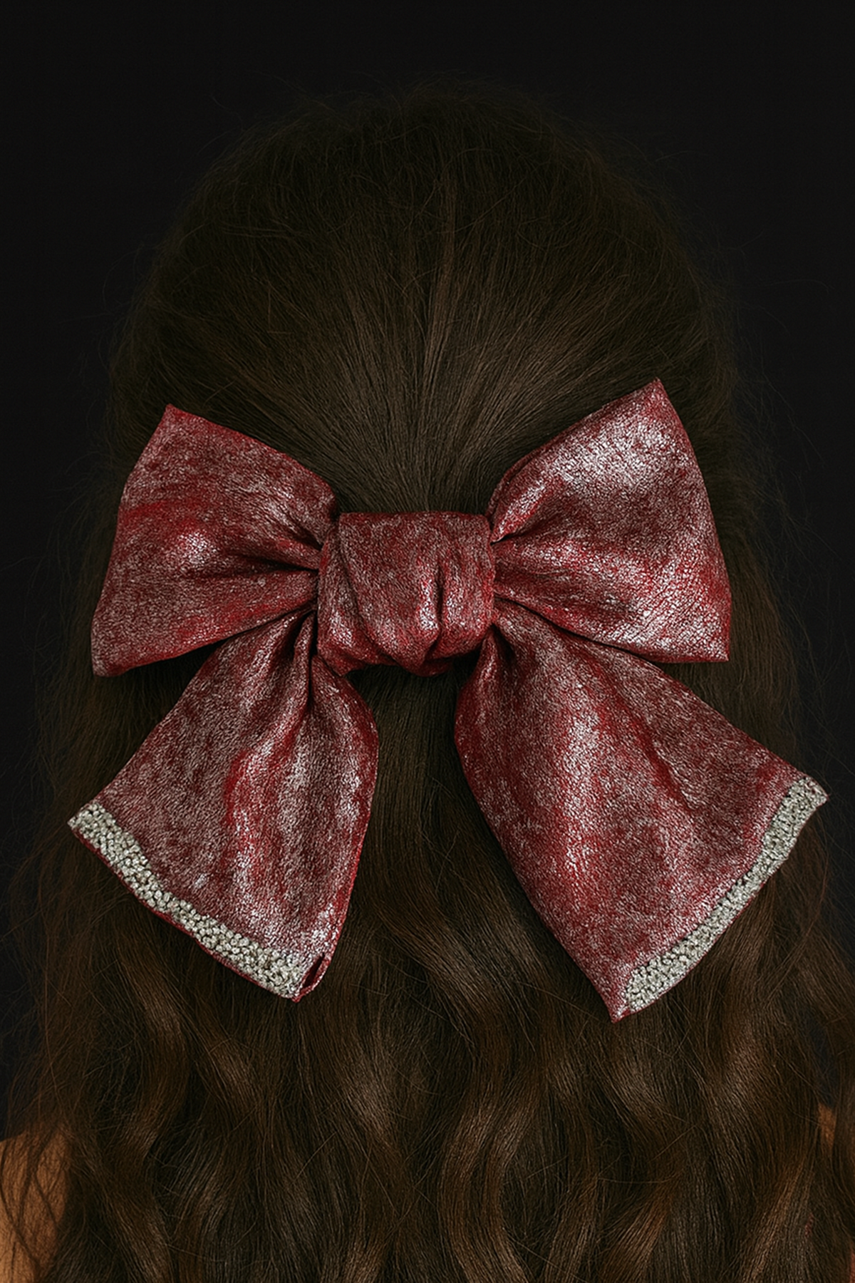 Bordo Renk Kurdele Figürlü Taş Detaylı Otomat Toka
