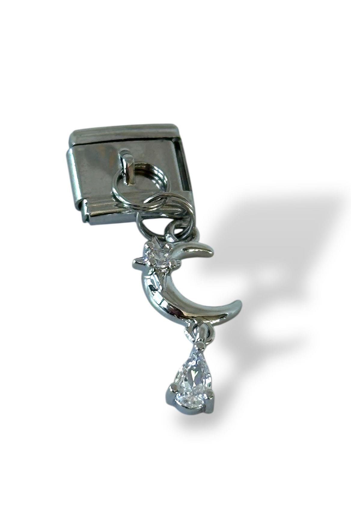 Gümüş Renk Ay Ve Taş Detaylı Çelik Nomination Charm (Tek)
