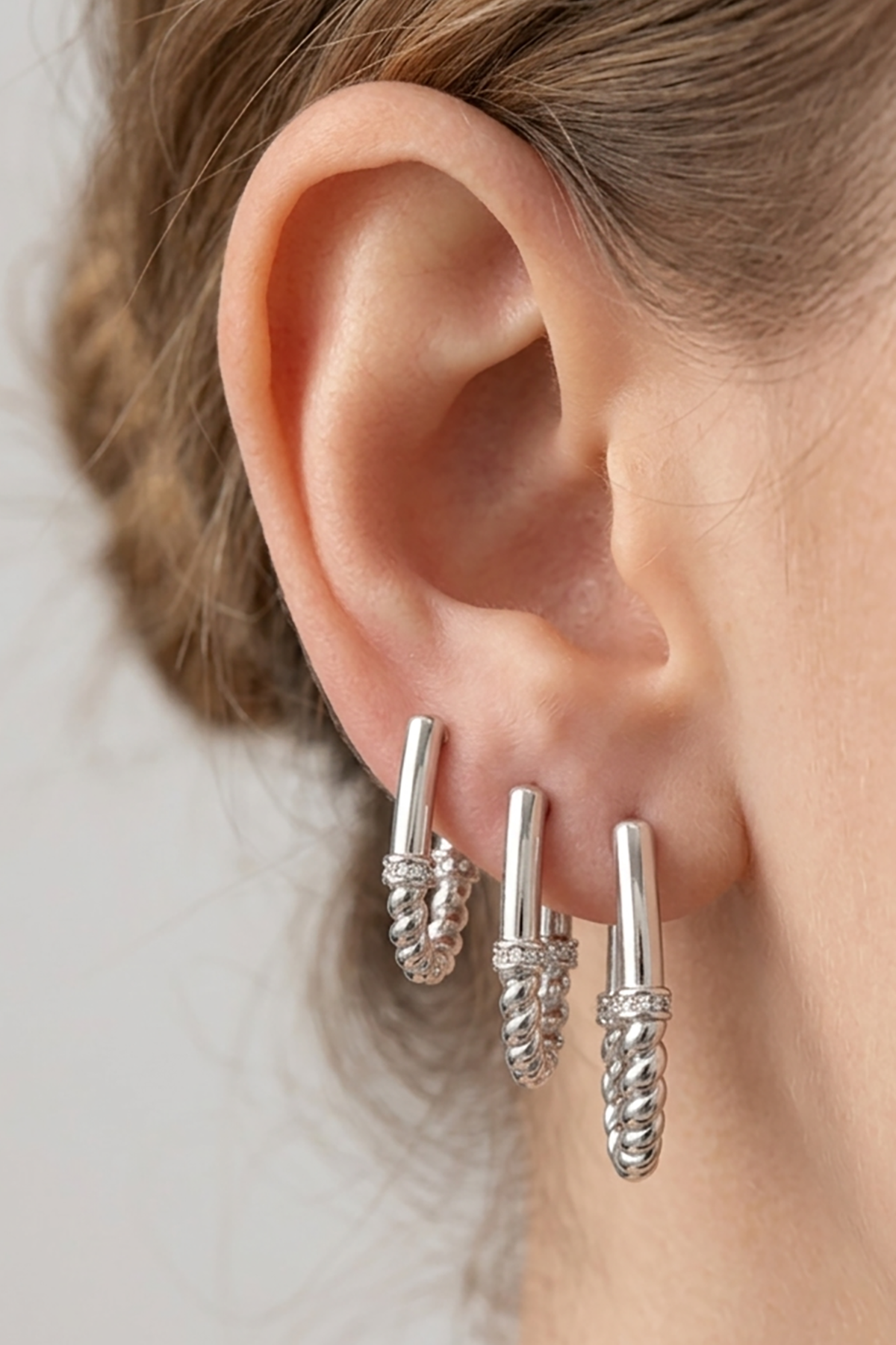 Gümüş Renk Burgu Detaylı 3'lü YSX Küpe Set