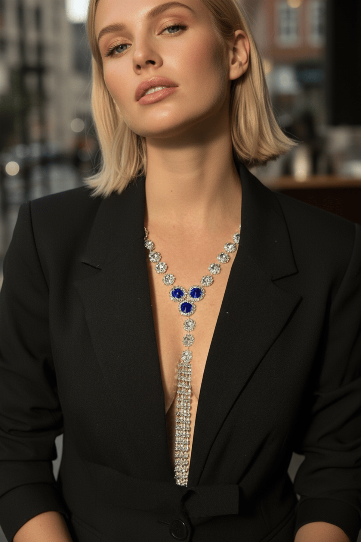 Gümüş Renk Mavi Taş Detaylı Vücut Aksesuarı