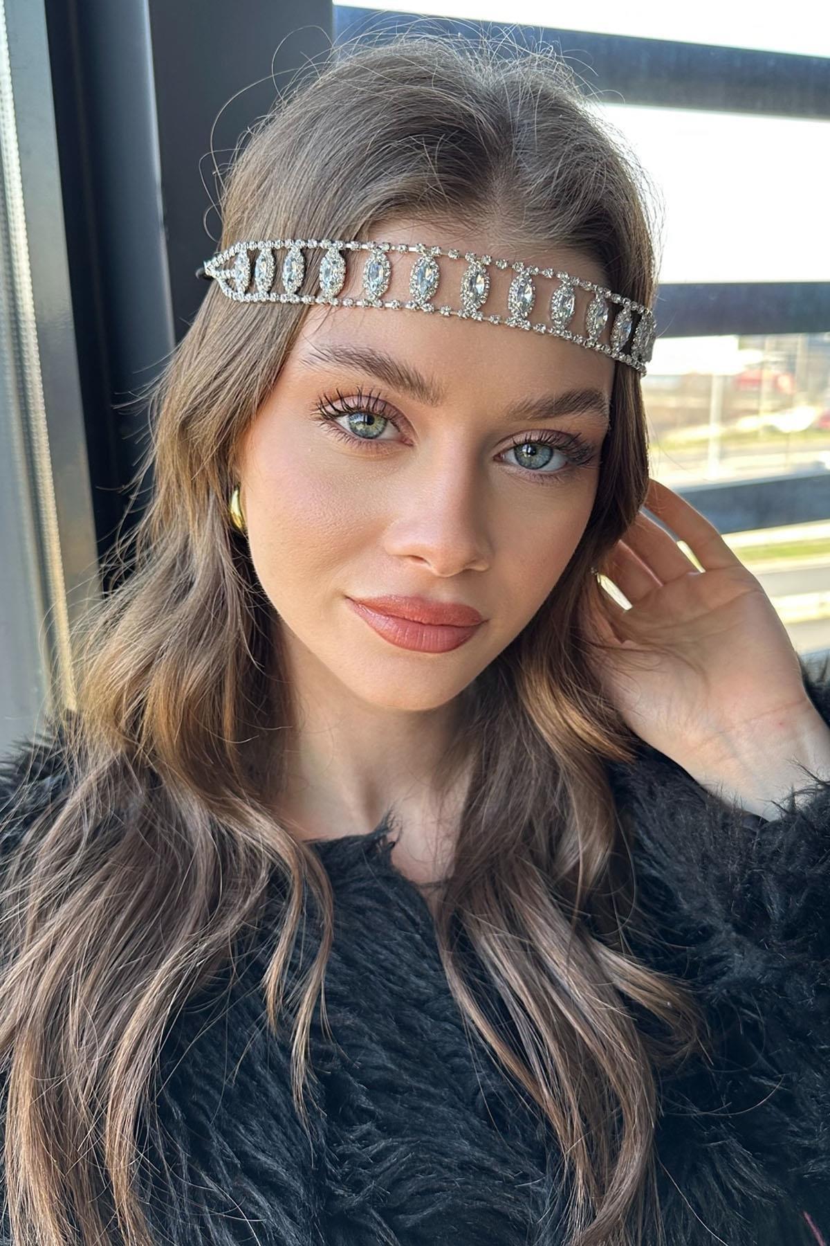 Gümüş Renk Taş Detaylı Alınlık/Kına Aksesuarı