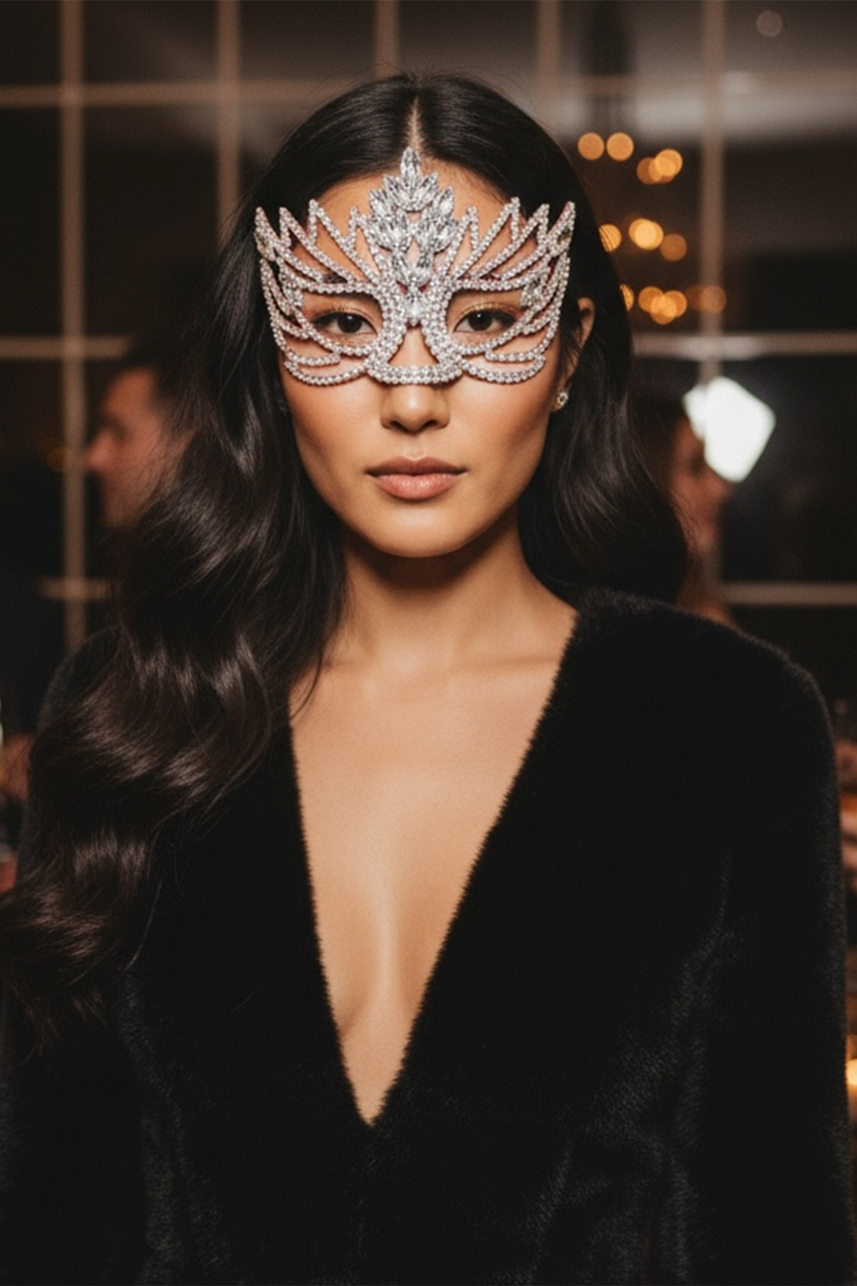 Bu taşlı yüz party maskesi, parti gecelerinde parıltınızı ve çekiciliğinizi artırmak için tasarlanmıştır. Zarif taş detayları ile süslenmiş olan bu maskenin altındaki yüzünüz, partinin en göz alıcı görüneni olacak.