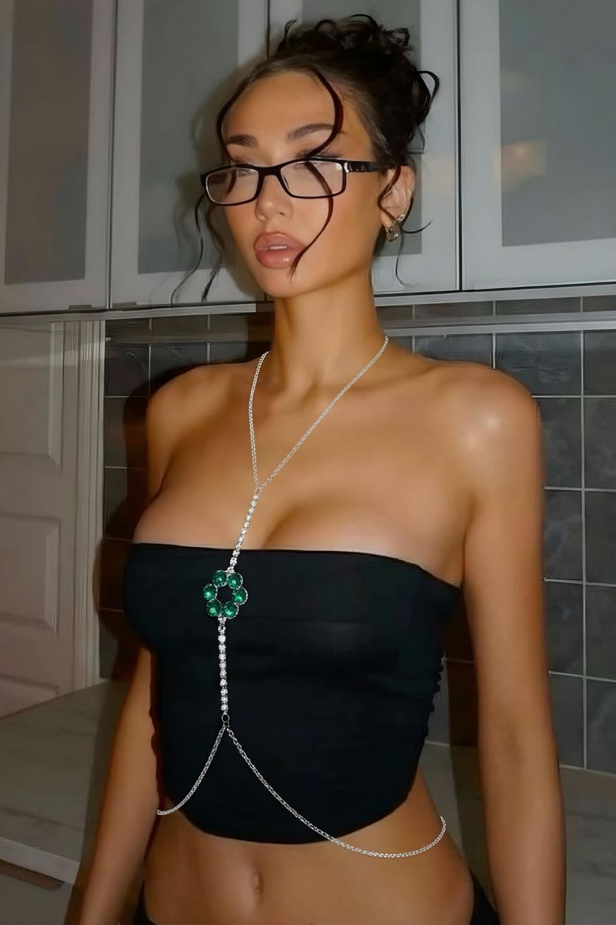Gümüş Renk Yeşil Taş Detaylı Tasarım Vücut Aksesuar