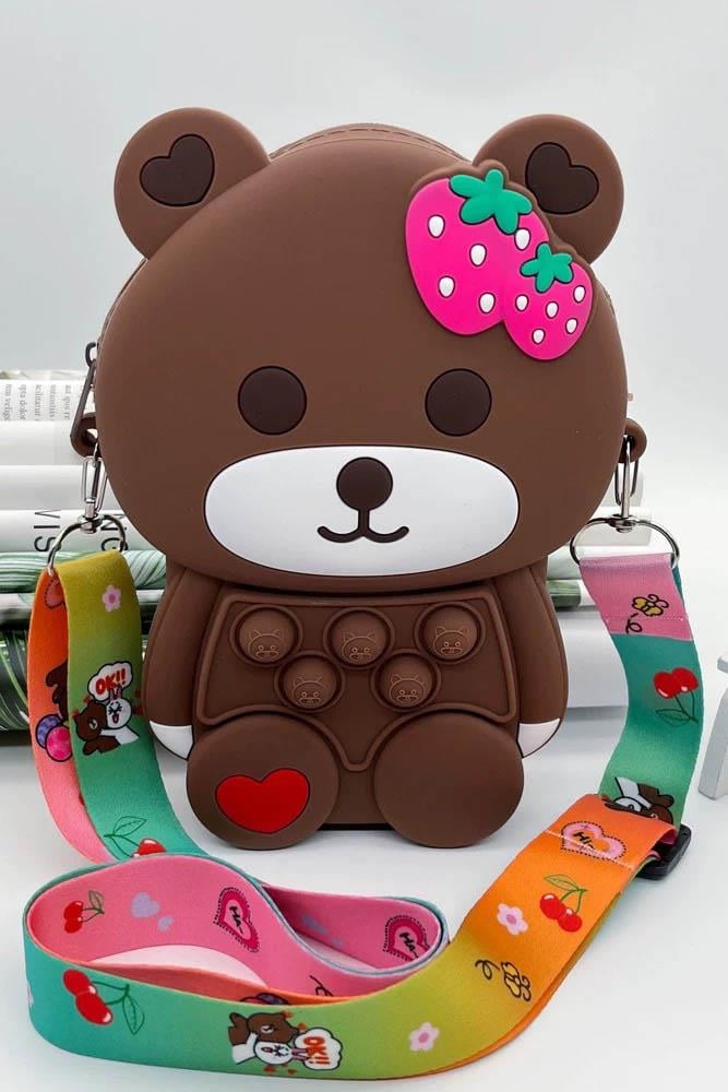 Kahverengi Ayıcık Figürlü Çocuk Pop-İt Çanta