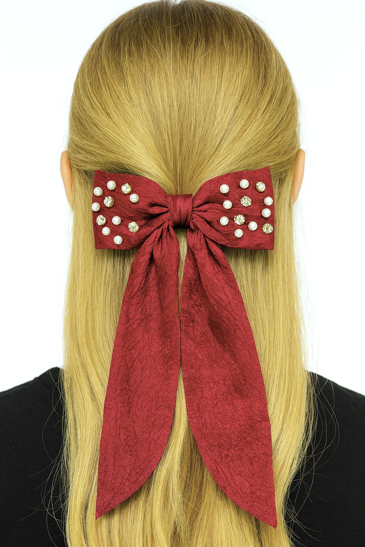 Kırmızı Renk Kurdele Figürlü İnci Ve Taş Detaylı Otomat Toka