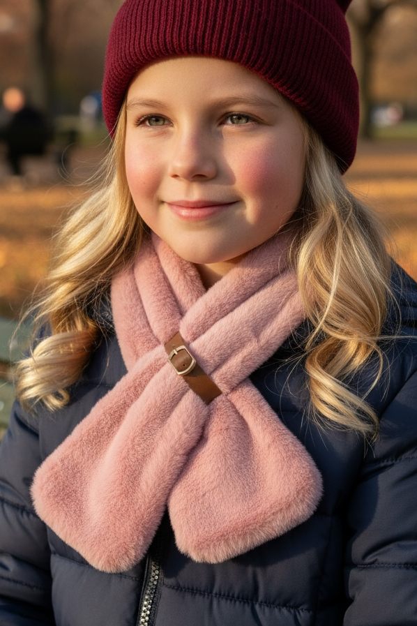 Koyu Pembe Renk Çocuk Peluş Atkı