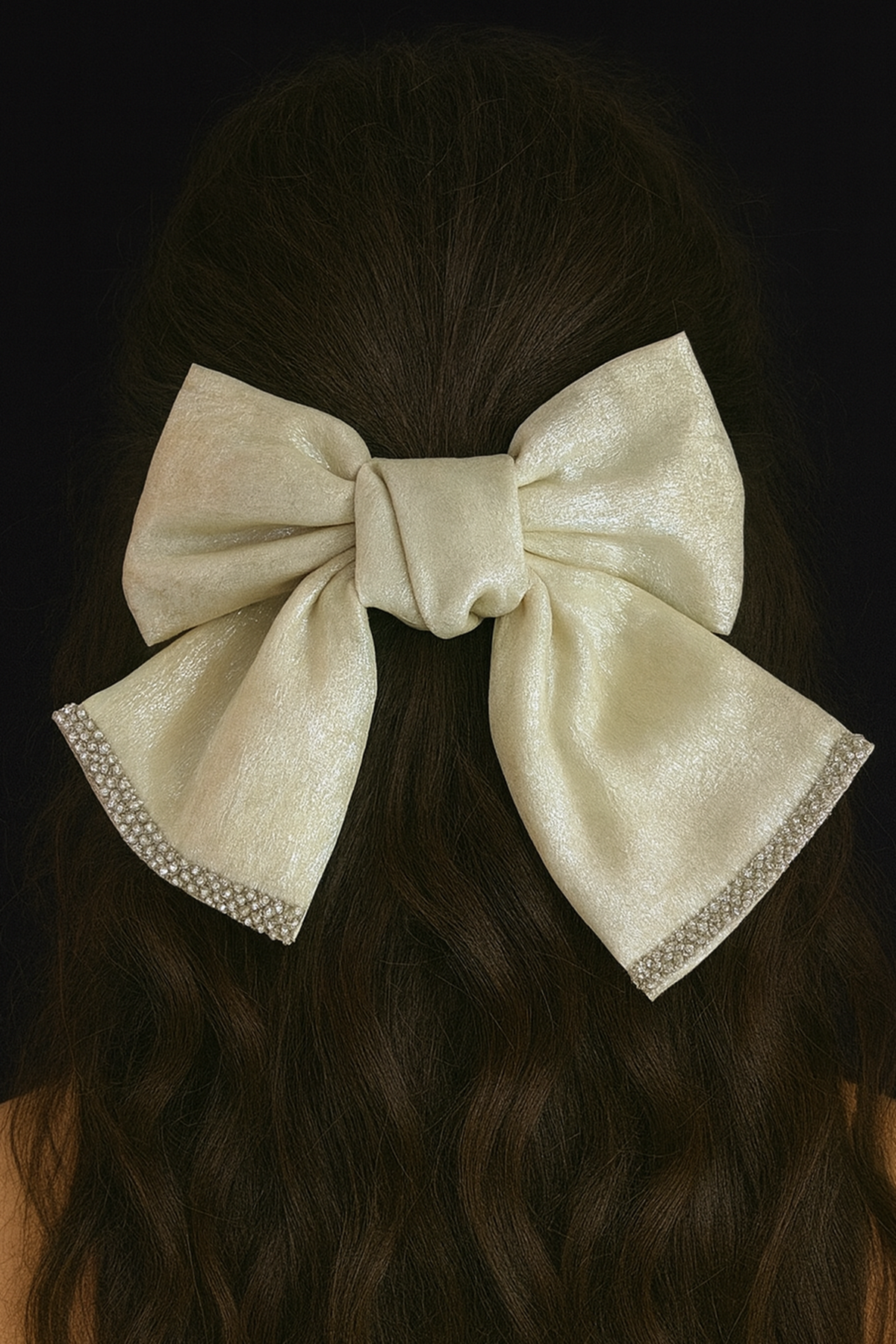 Krem Renk Kurdele Figürlü Taş Detaylı Otomat Toka