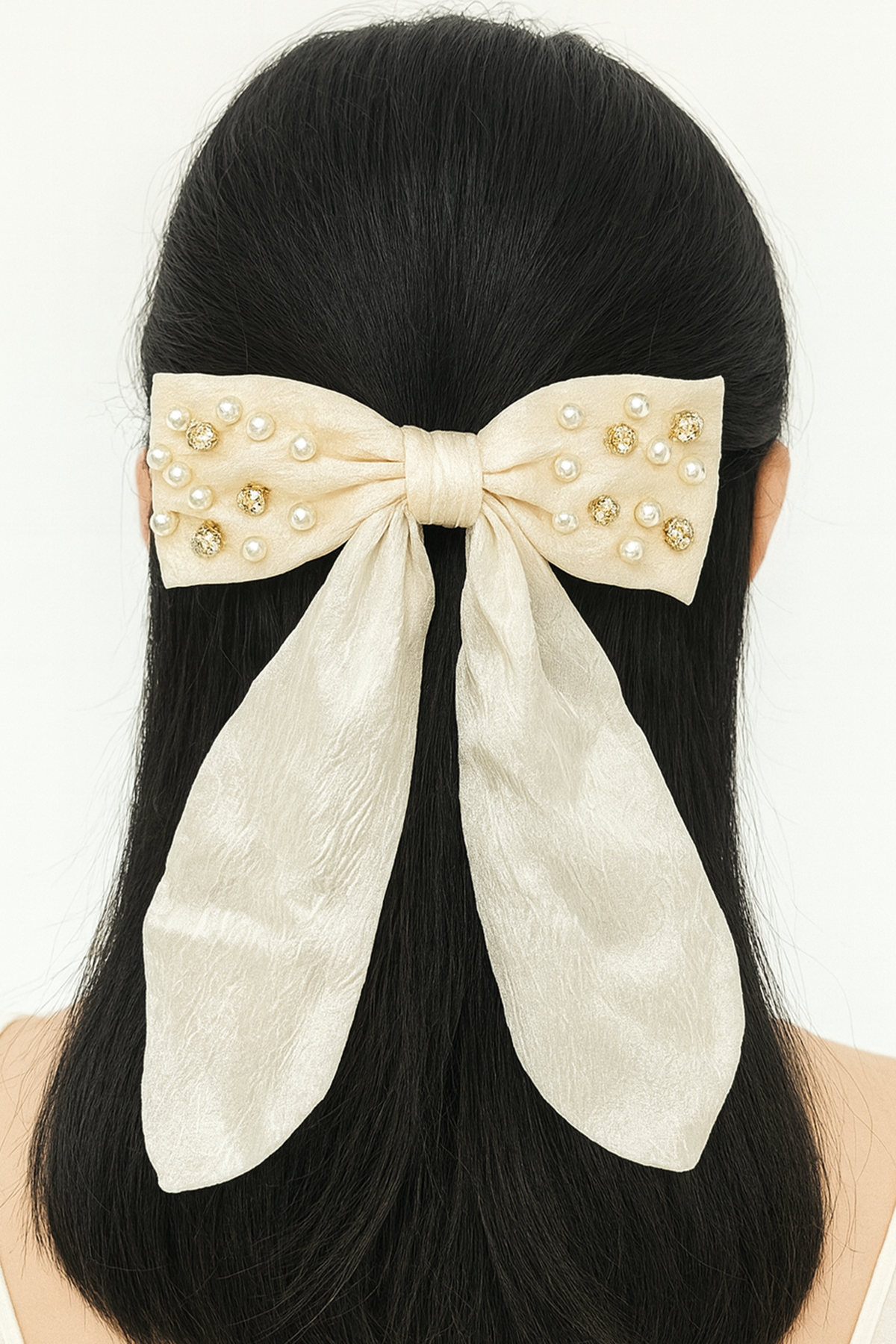 Krem Renk Kurdele Figürlü Taş Ve İnci Detaylı Otomat Toka