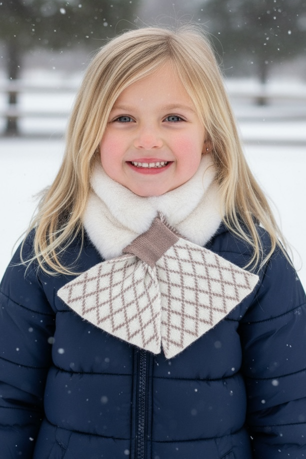 Krem Ve Kahve Renk Çizgi Detaylı Çocuk Peluş Atkı