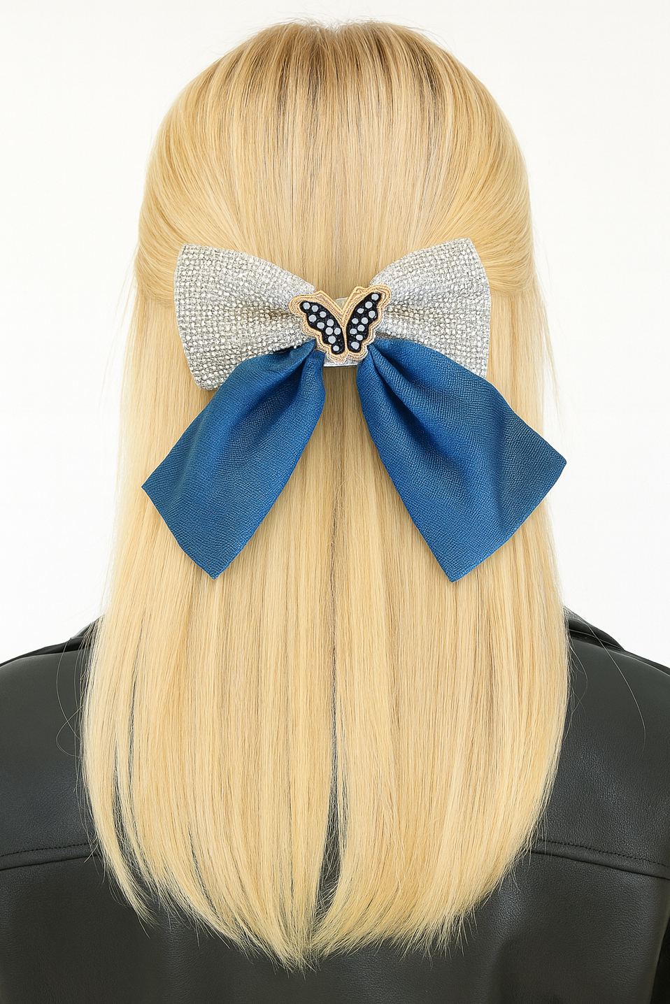 Lacivert Renk Kelebek Figürlü Taş Detaylı Kurdele Otomat Toka