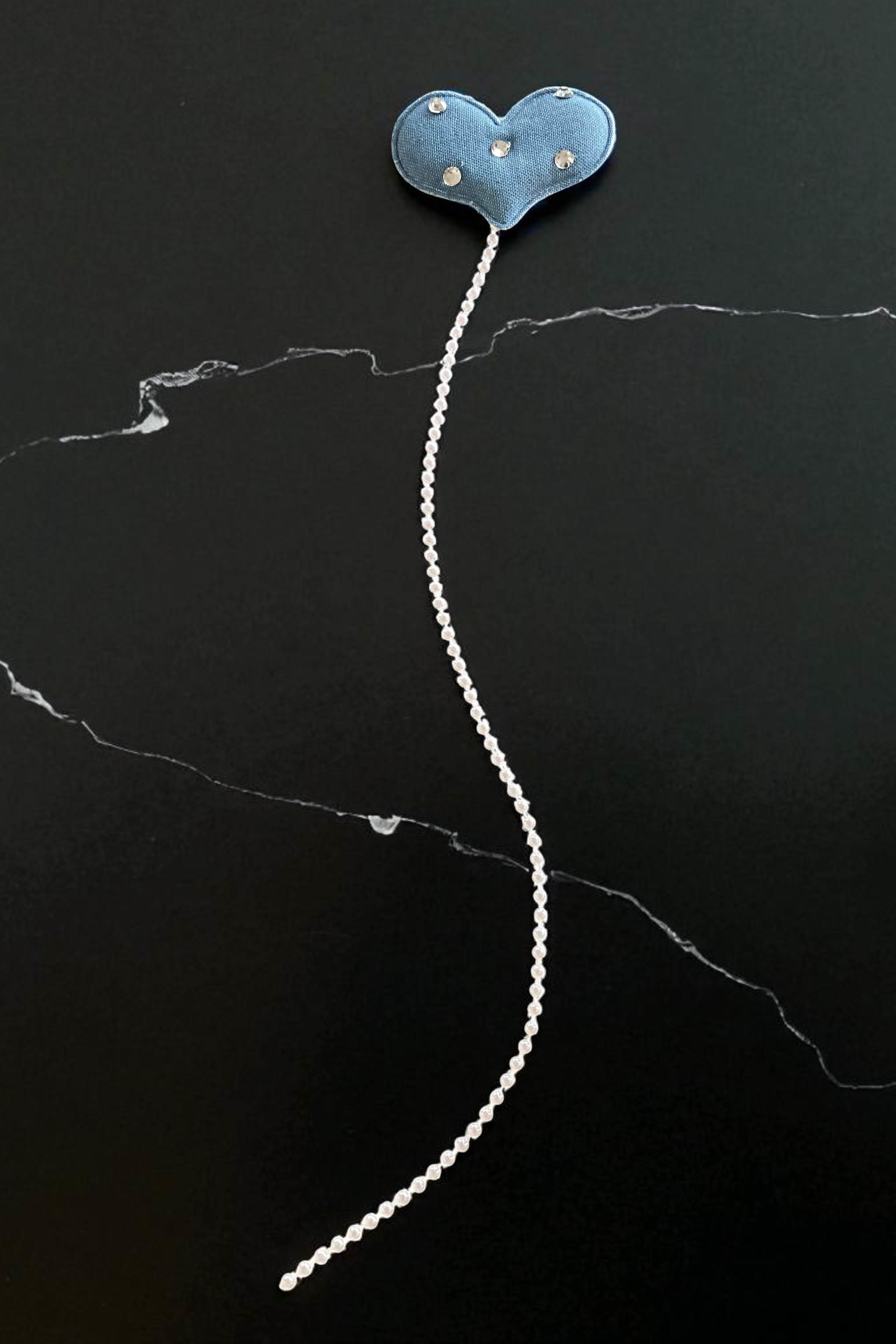 Mavi Renk Kalp Figürlü Sallantılı İnci Detaylı Çocuk Yan Toka