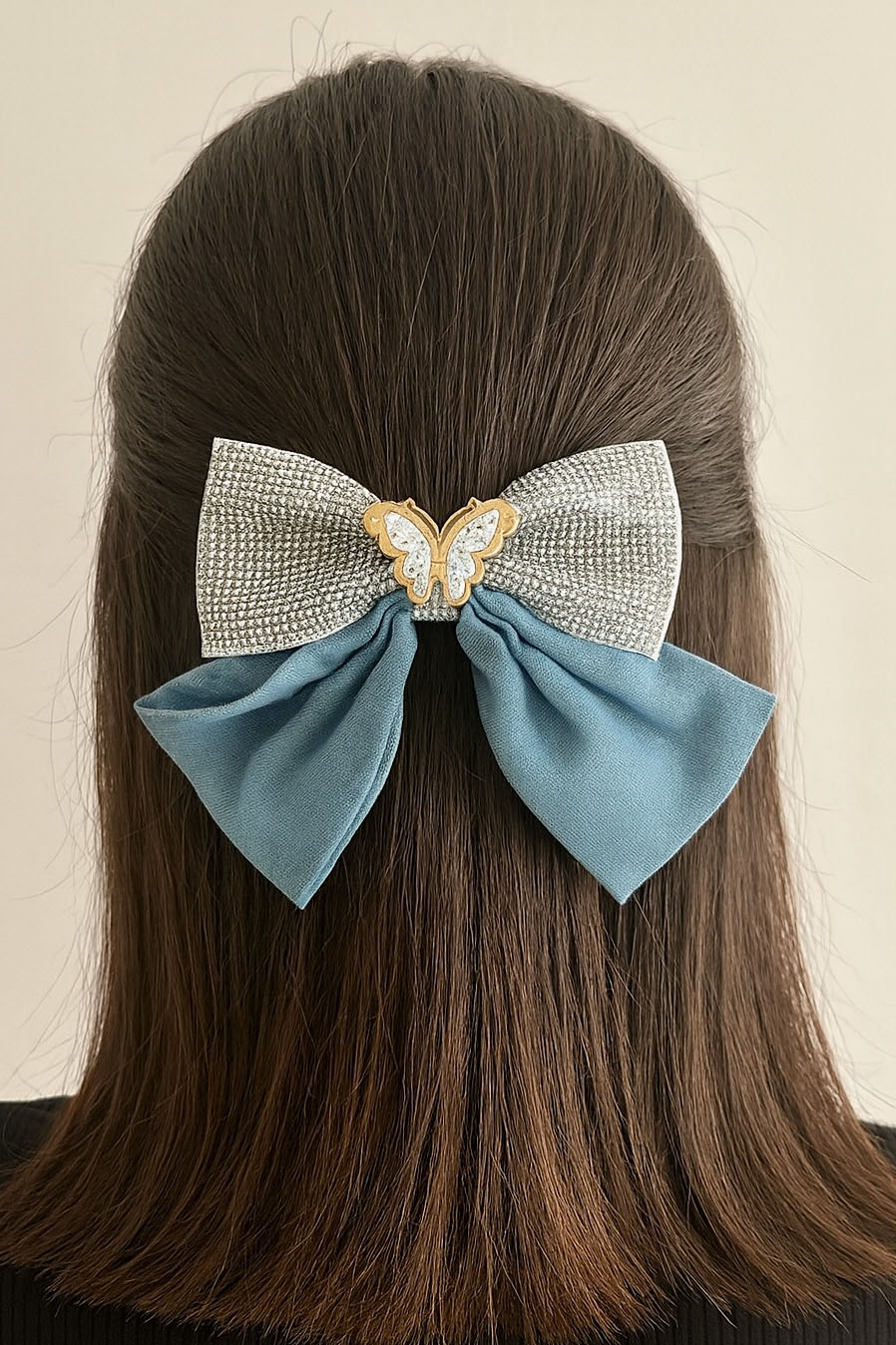 Mavi Renk Kelebek Figürlü Taş Detaylı Kurdele Otomat Toka