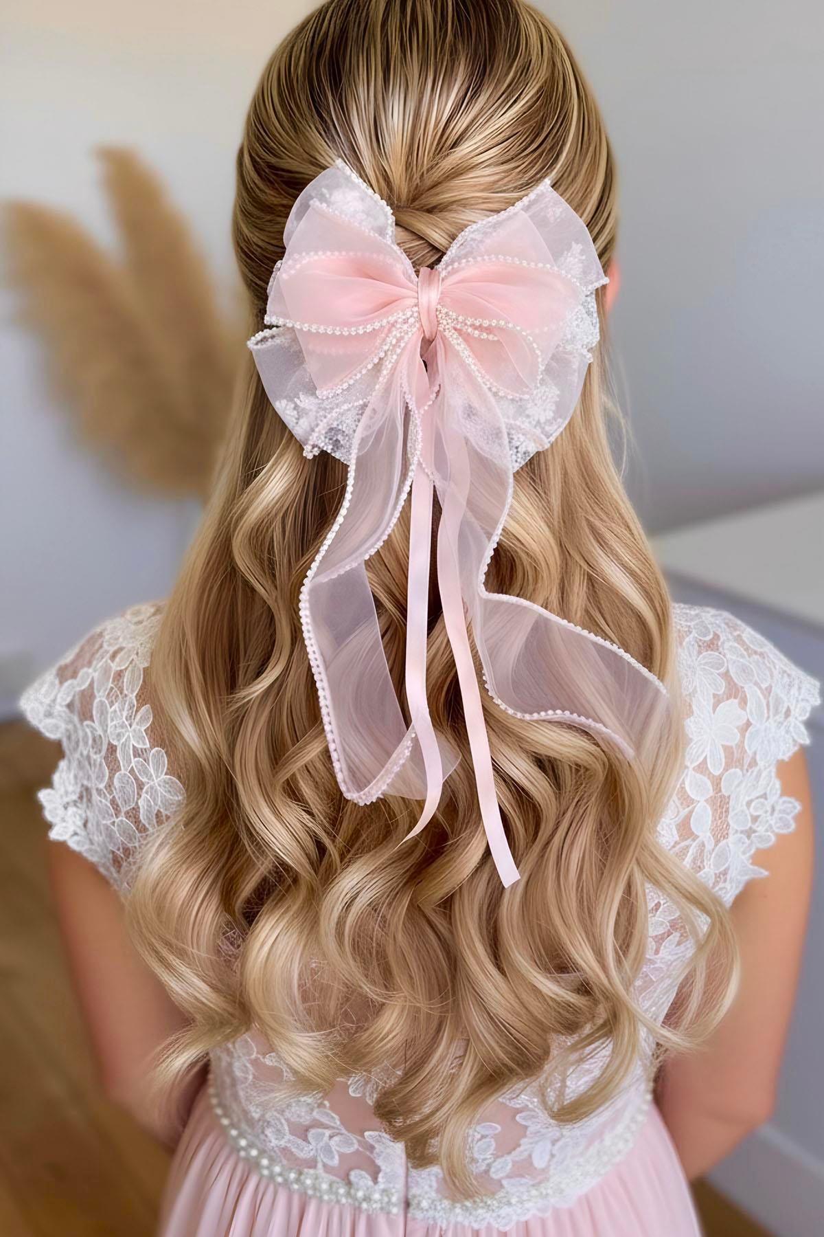 Pembe Renk Kurdele Figürlü İnci Detaylı Otomat Toka