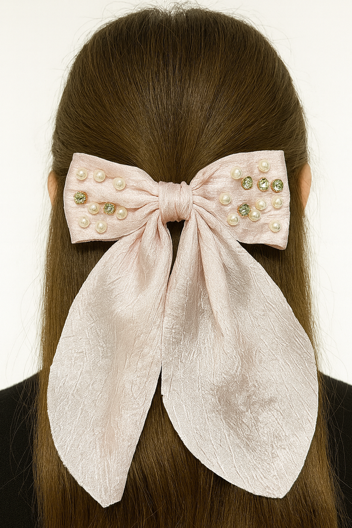 Pembe Renk Kurdele Figürlü İnci Ve Taş Detaylı Otomat Toka