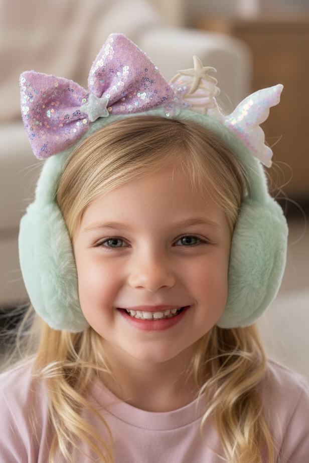 Turkuaz Ve Pembe Renk Karışık Figürlü Çocuk Peluş Kulaklık