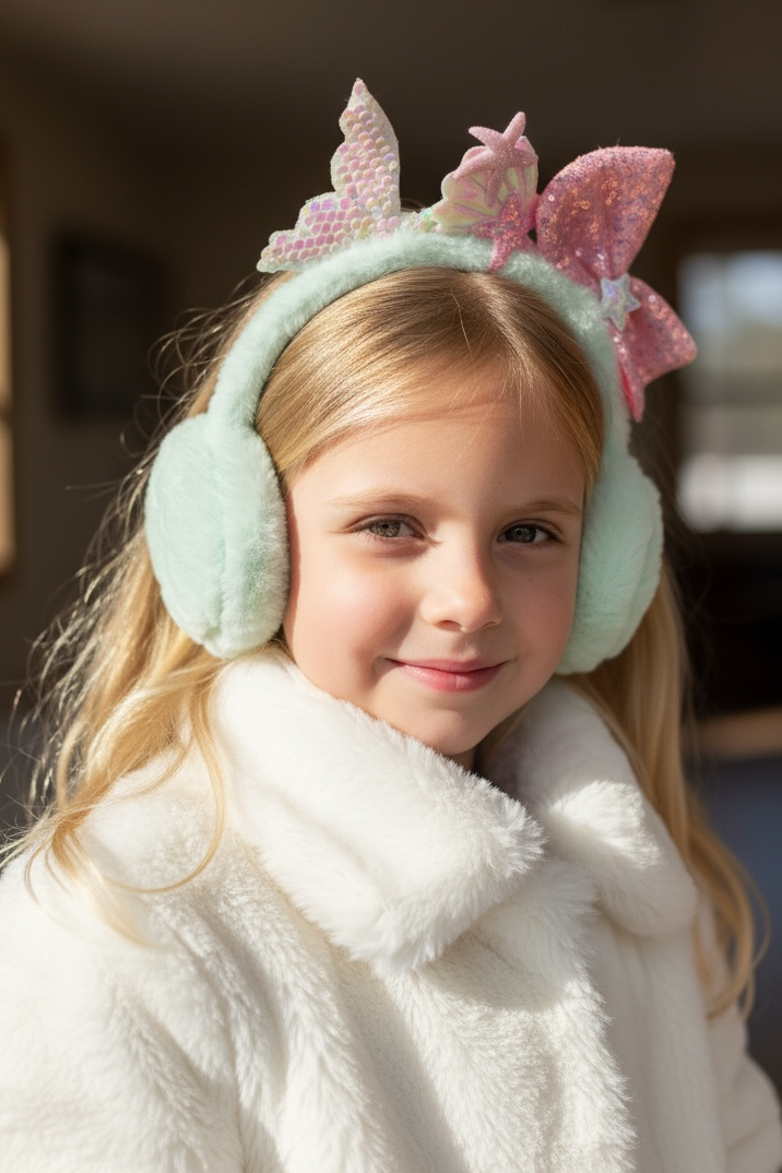 Turkuaz Ve Pembe Renk Karışık Figürlü Peluş Kulaklık
