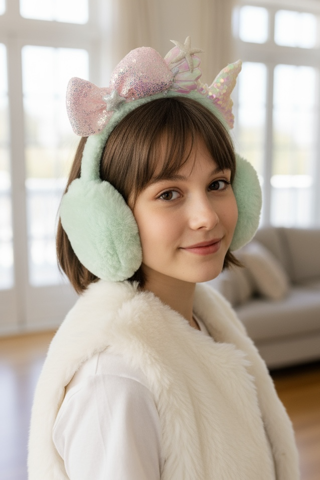 Turkuaz Ve Pembe Renk Karışık Figürlü Peluş Kulaklık