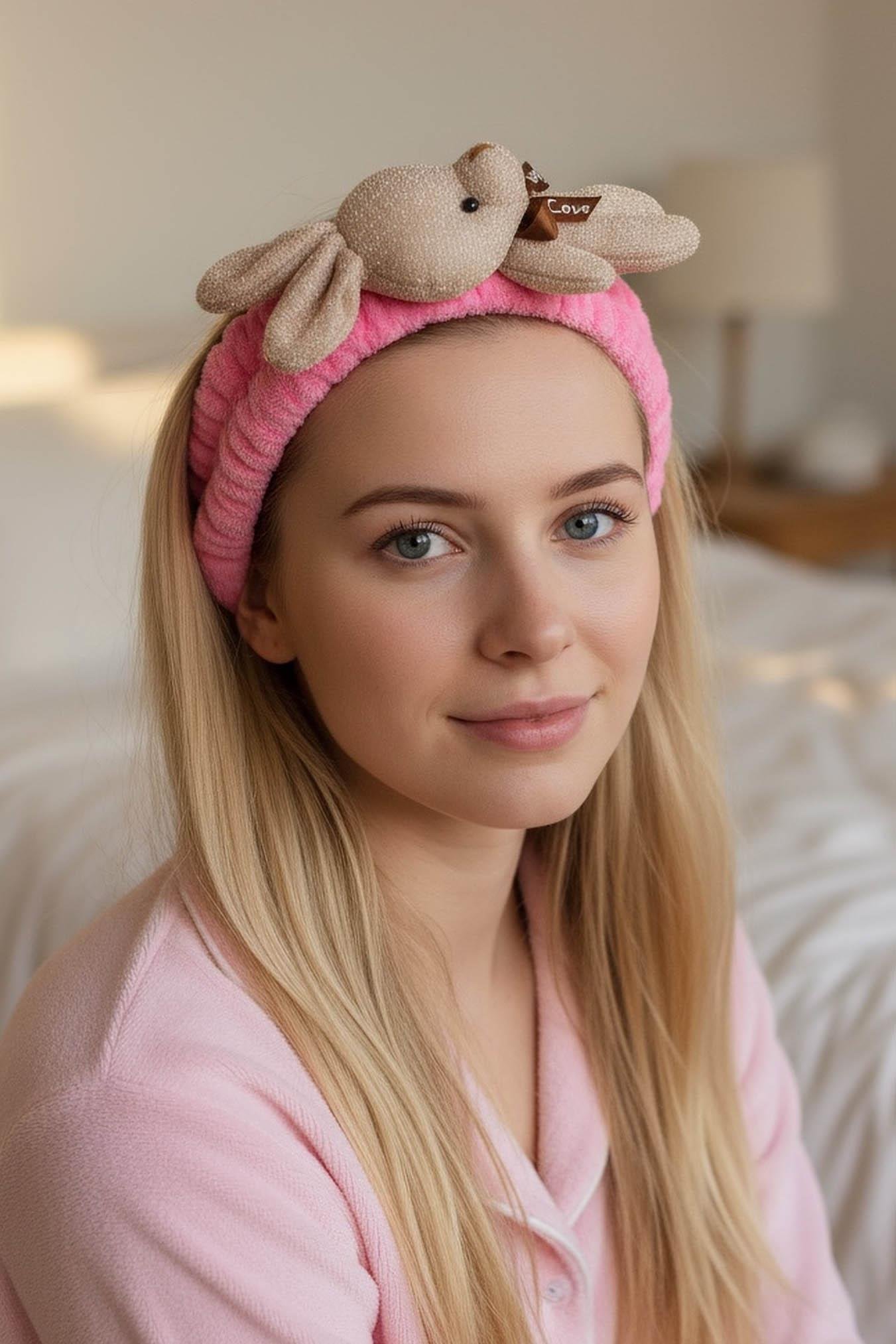 Fuşya Ve Bej Renk Tavşan Figürlü Peluş Saç Bandı