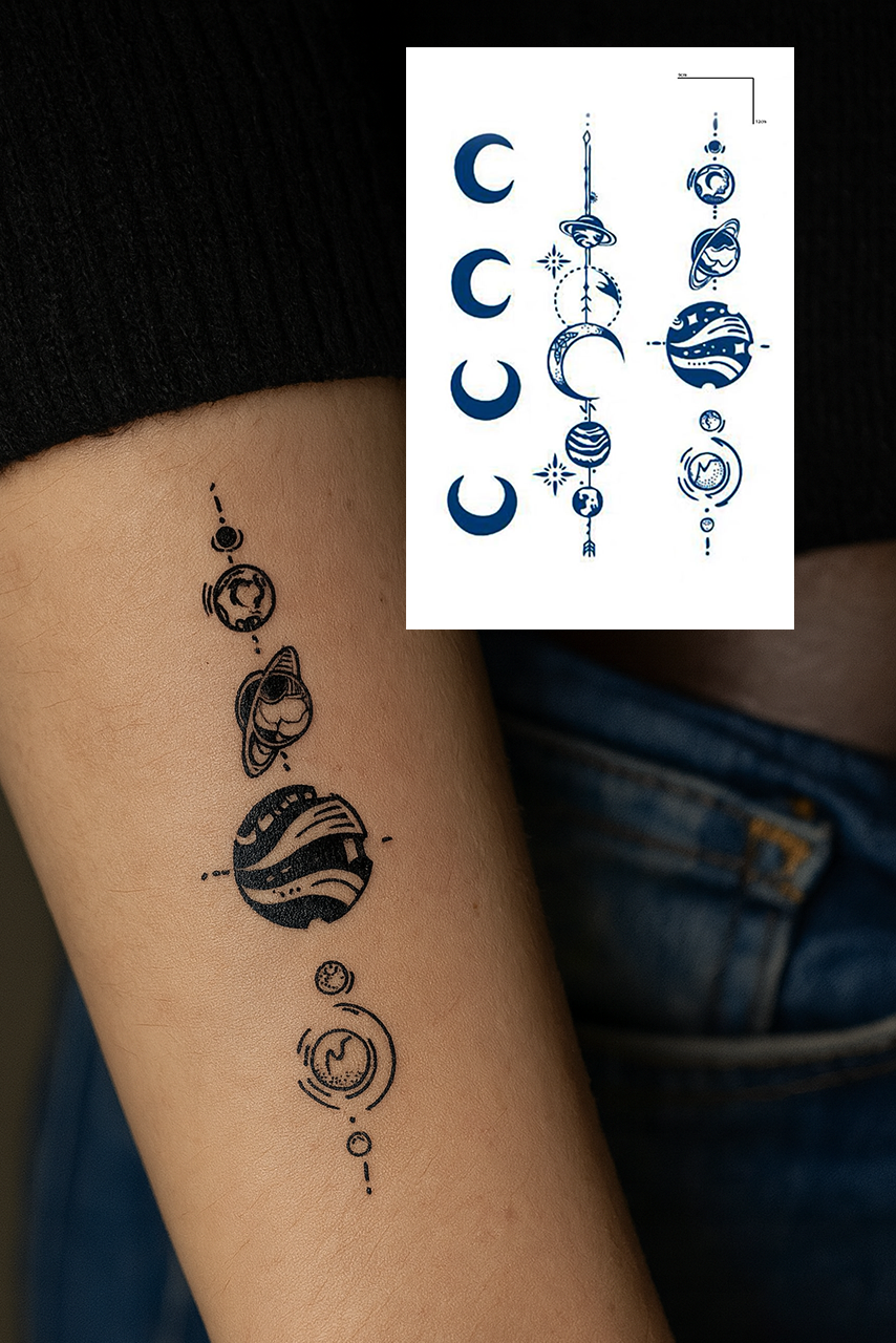 Gezegen Ve Ay Figürlü 12 Saat Sonra Kararan Geçici Dövme Tattoo