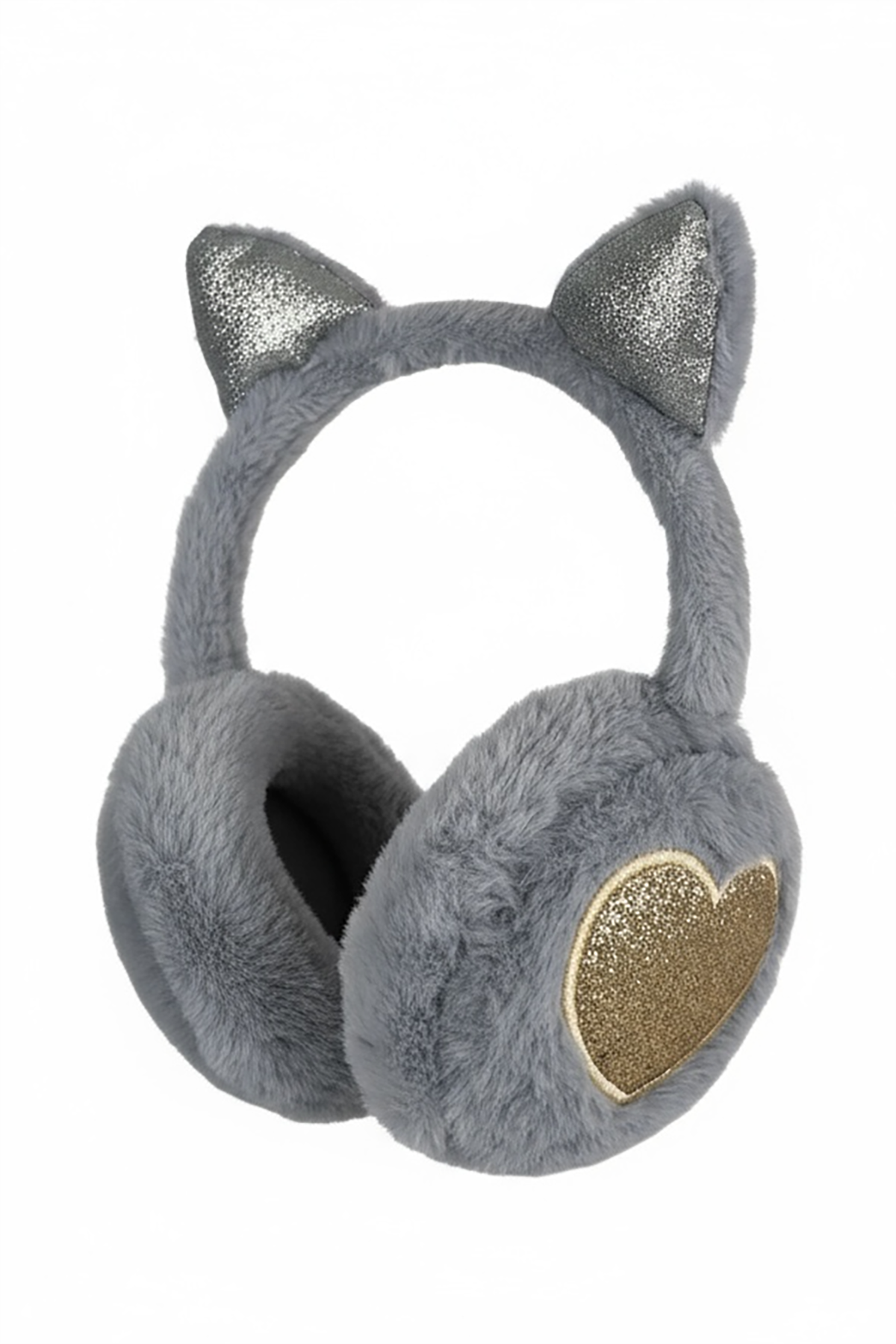 Gri Renk Kalp Figürlü Kulaklı Çocuk Peluş Kulaklık