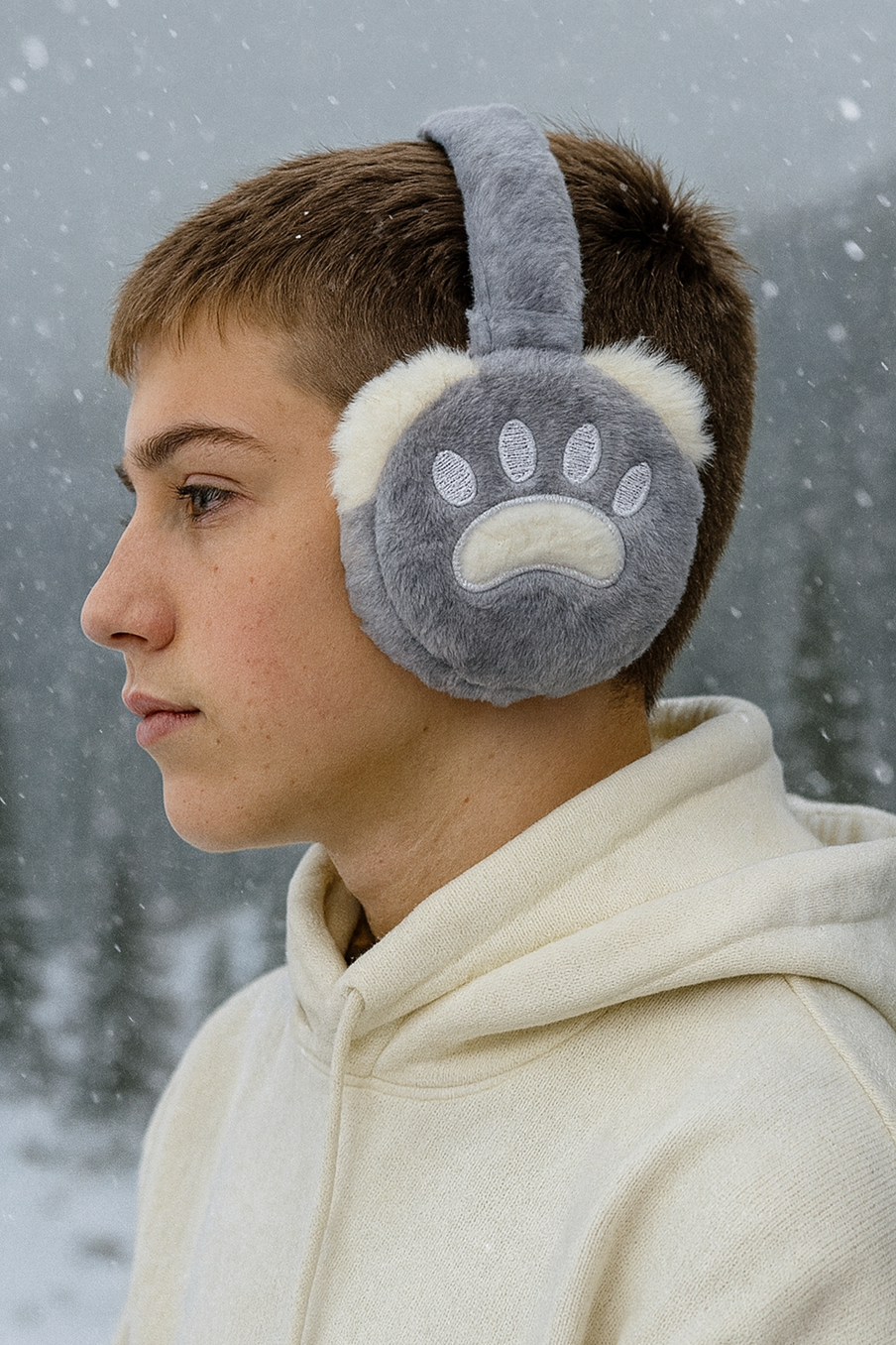 Gri Renk Pati Figürlü Peluş Kulaklık