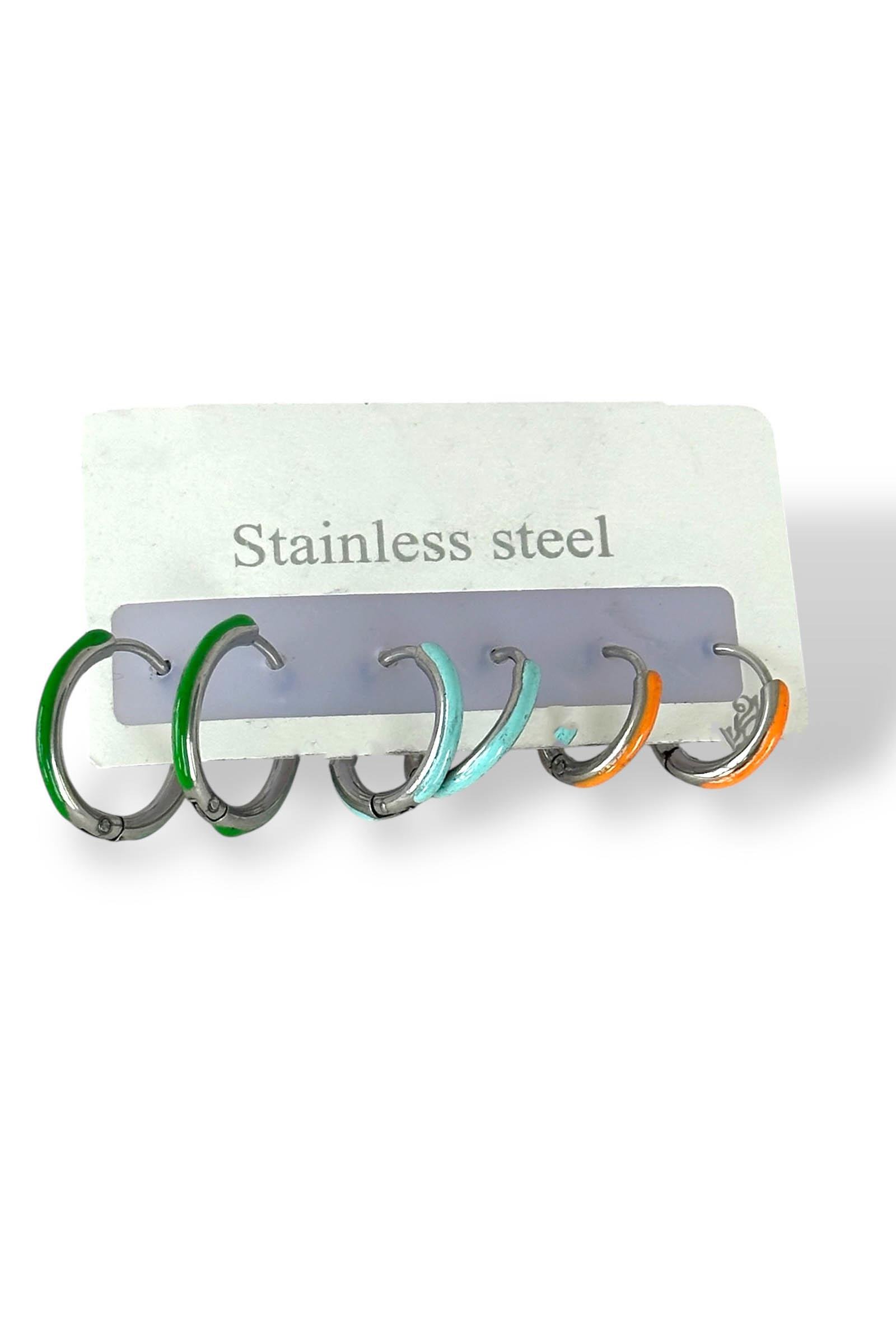 Gümüş Renk 6'lı Çelik Halka Küpe Seti