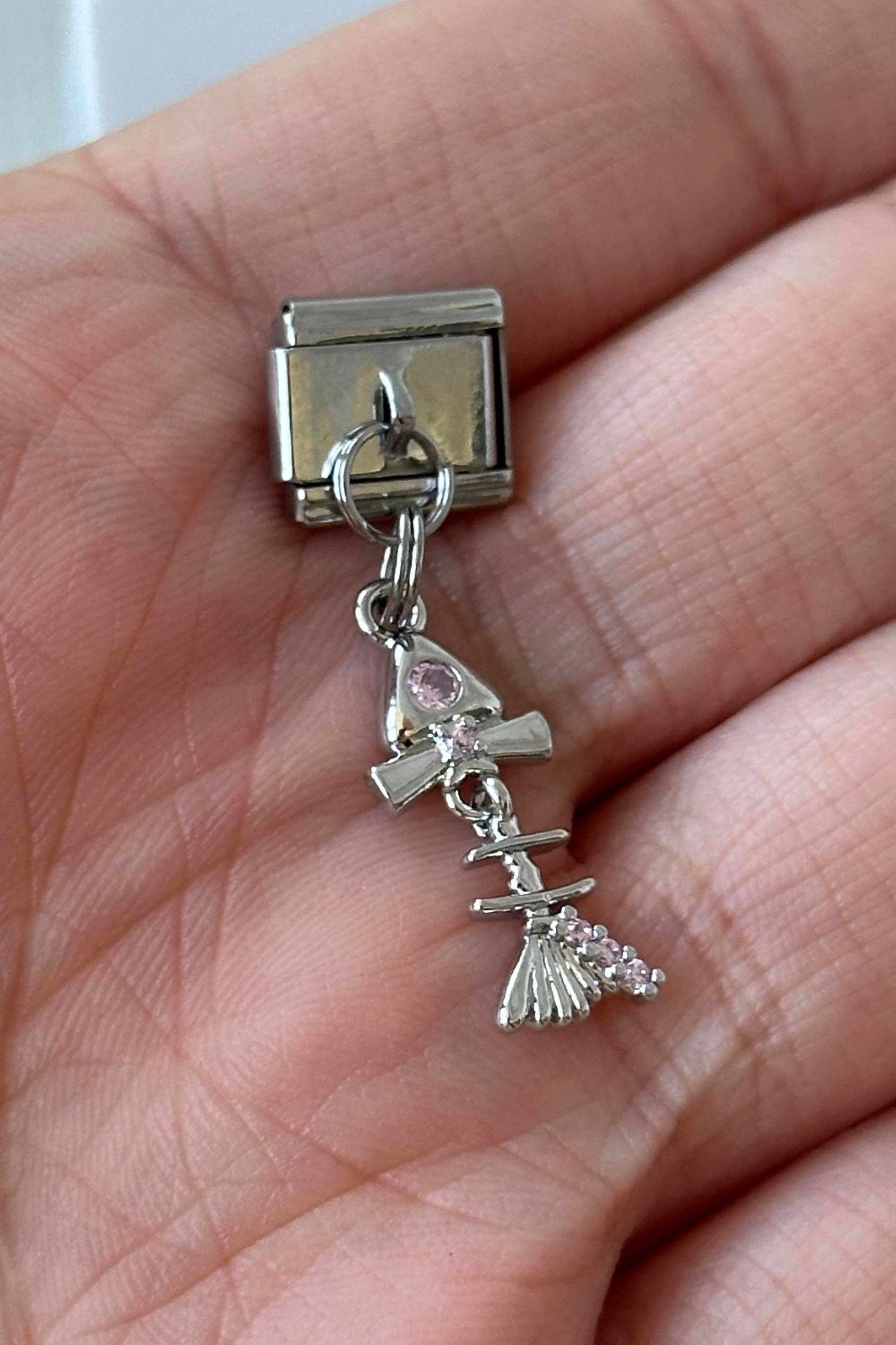 Gümüş Renk Balık Figürlü Taş Detaylı Çelik Nomination Charm (Tek)
