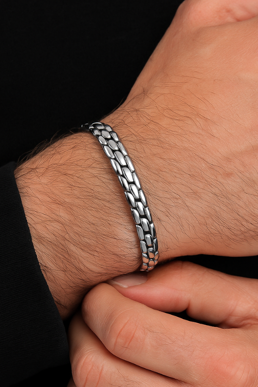 Gümüş Renk Burgu Detaylı Erkek Çelik Kelepçe Bileklik
