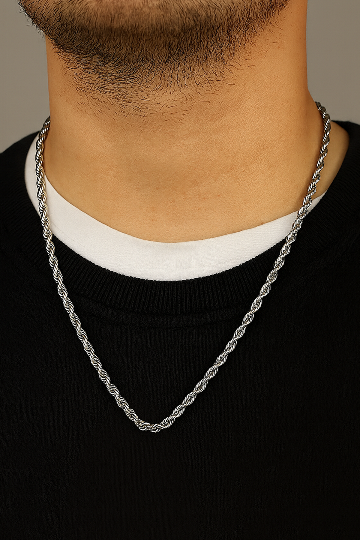 Gümüş Renk Burgu Detaylı Erkek Zincir Çelik Kolye (60cm)