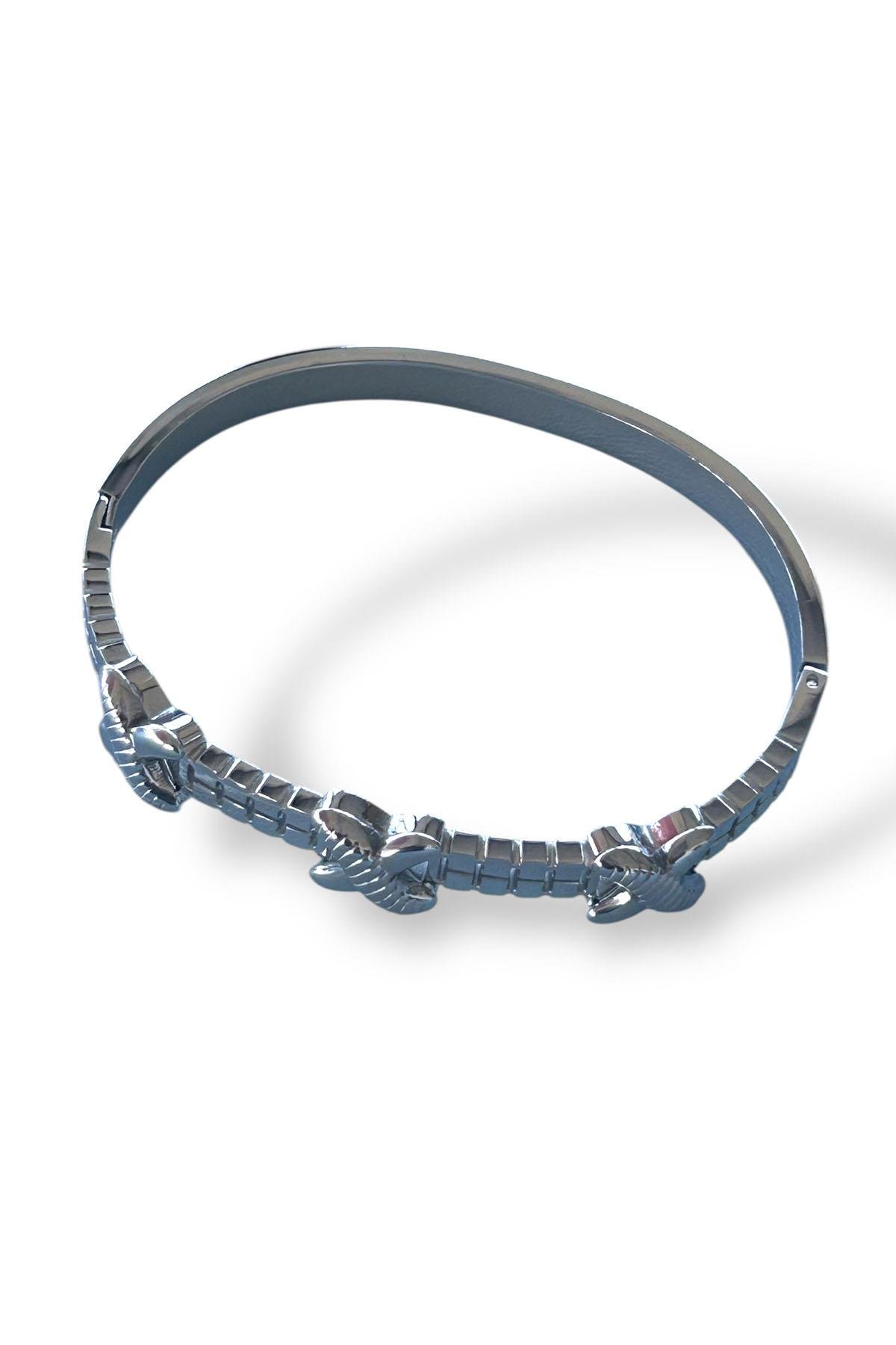 Gümüş Renk Çarpı Figürlü Çelik Kelepçe Bileklik
