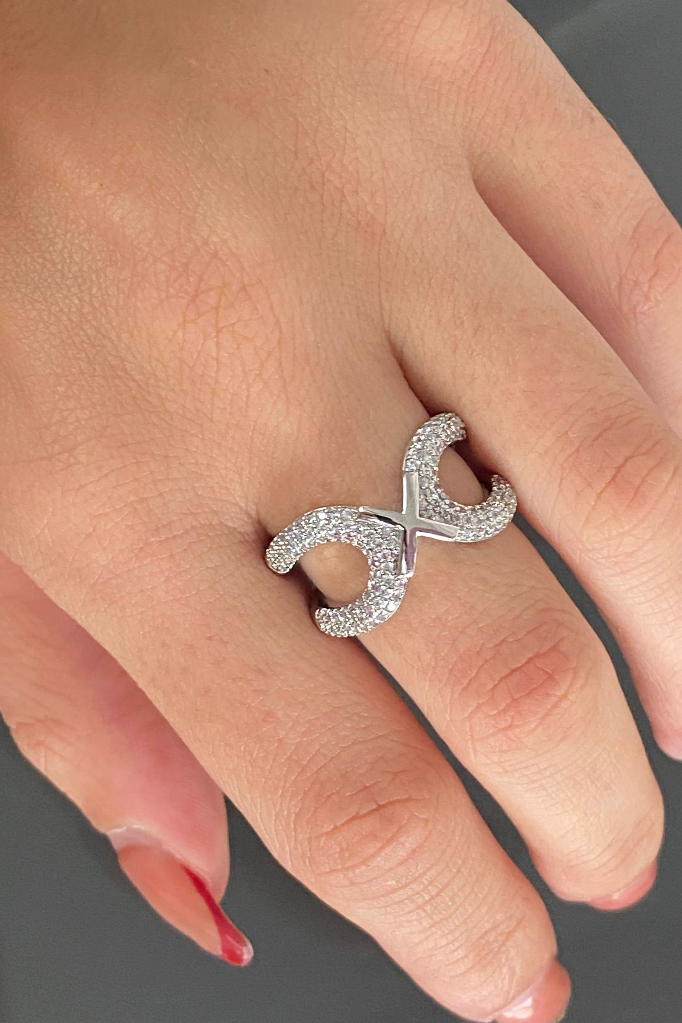 Gümüş Renk Çarpı Figürlü Taş Detaylı Ayarlanabilir Çelik Yüzük