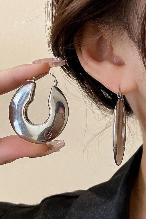 Gümüş Renk Çelik Halka Küpe (Çift)