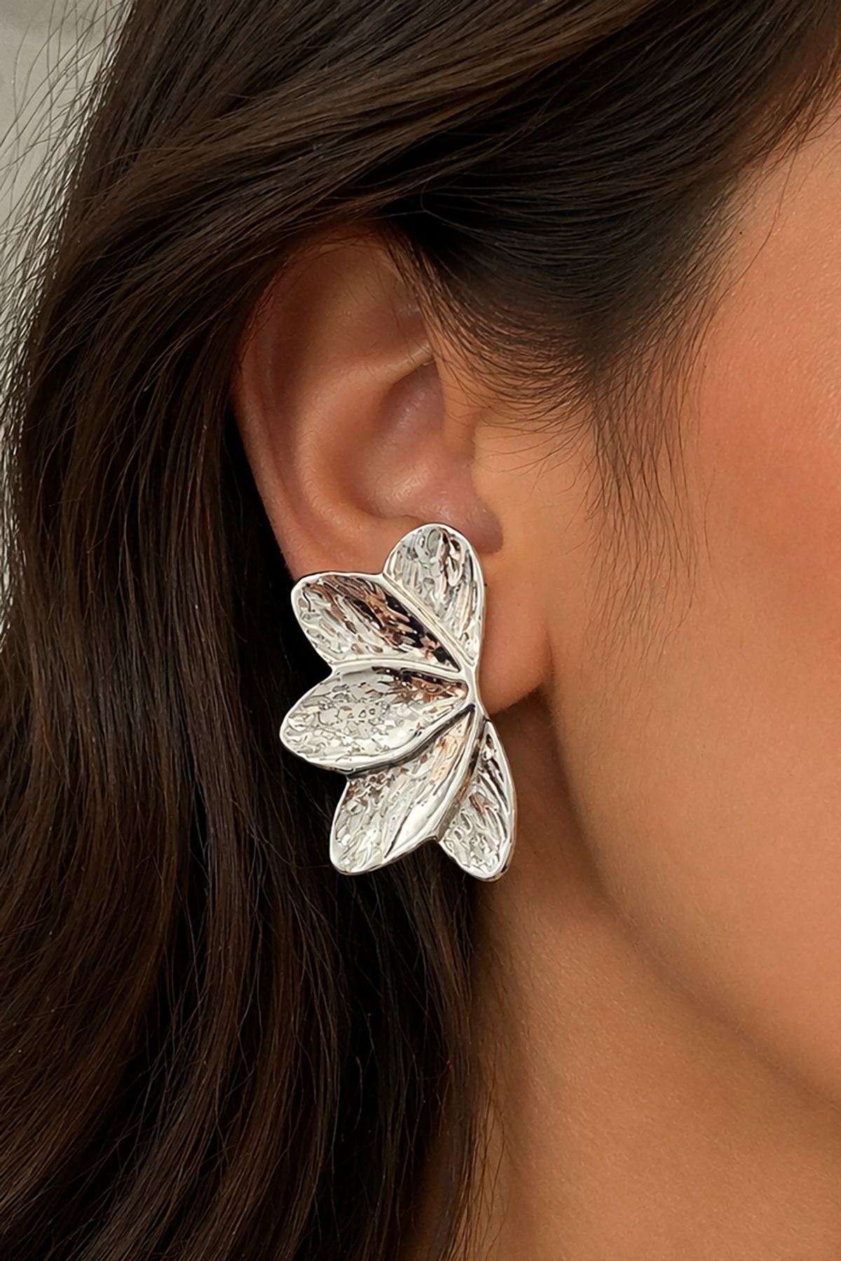 Gümüş Renk Çiçek Figürlü Küpe (Çift)