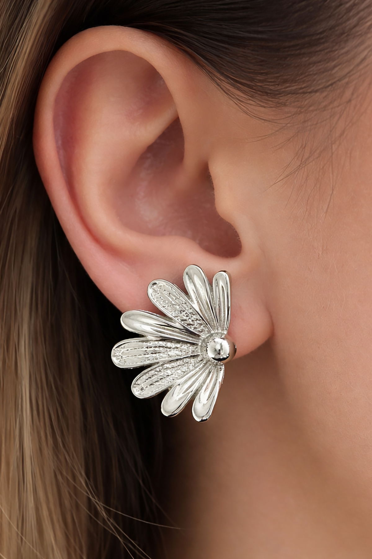 Gümüş Renk Çiçek Figürlü Küpe (Çift)