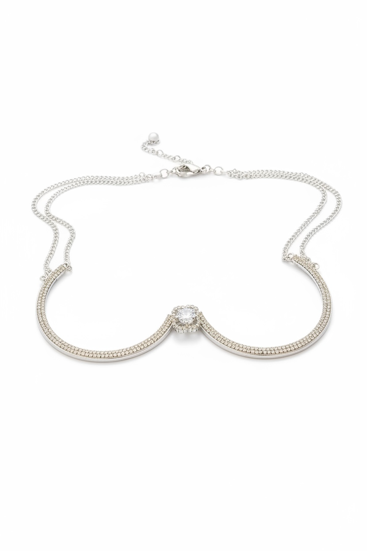 Gümüş Renk Çiçek Figürlü Taş Detaylı Tasarım Vücut Aksesuar