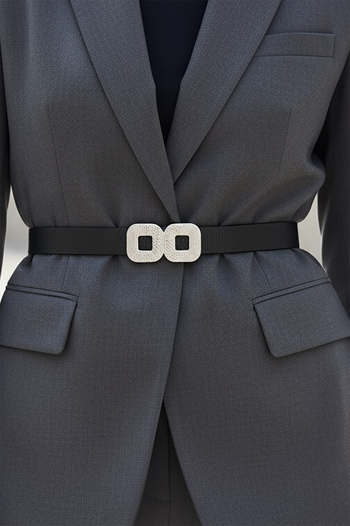Gümüş Renk Deri Detaylı Kadın Kemer