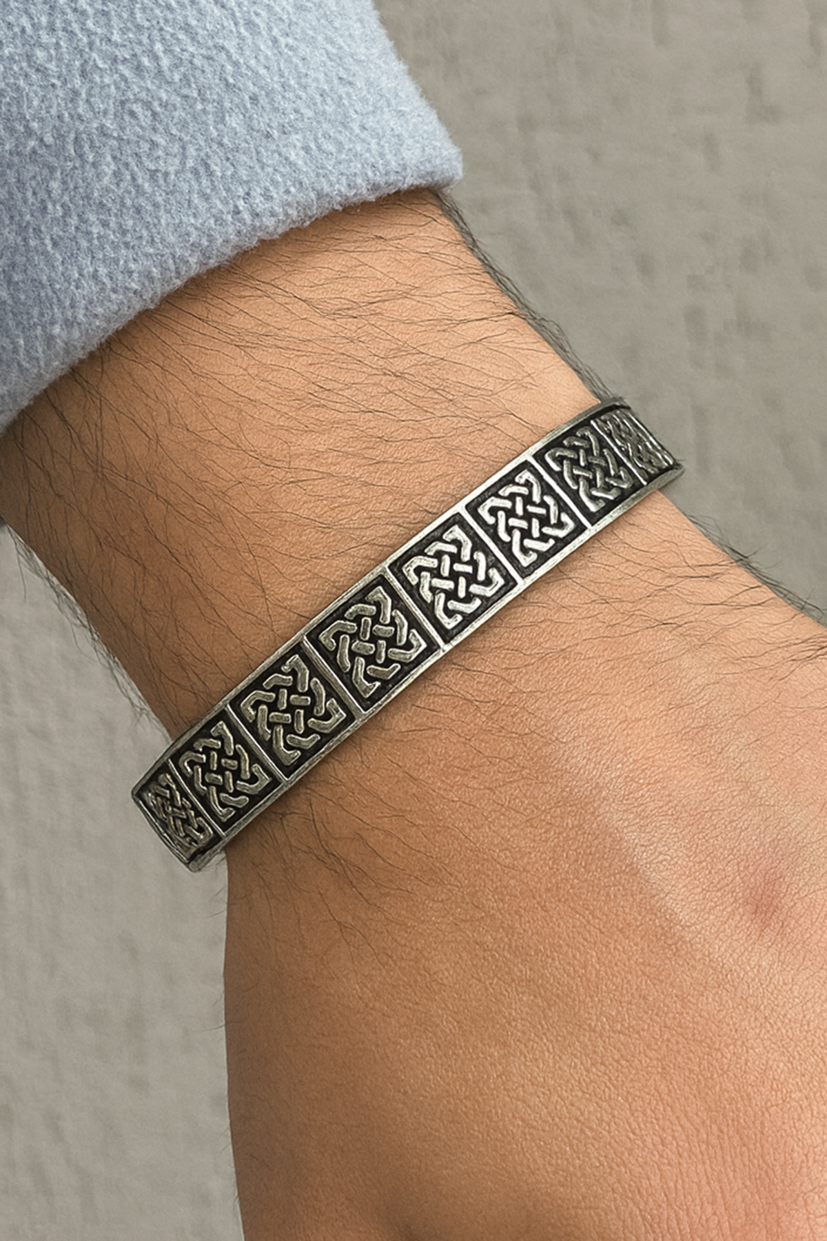 Gümüş Renk Erkek Çelik Kelepçe Bileklik