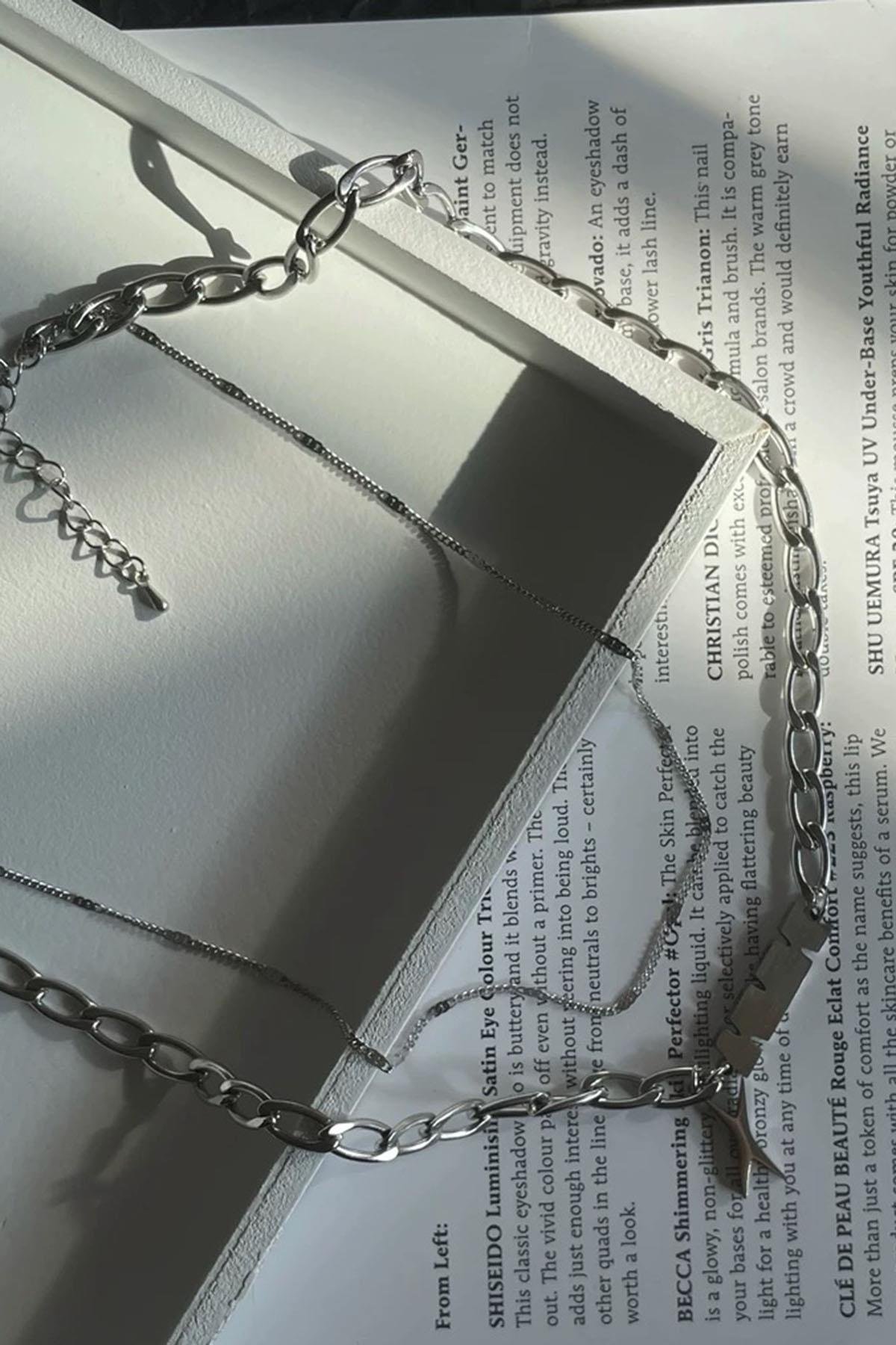 Gümüş Renk Erkek İkili Zincir Çelik Kolye