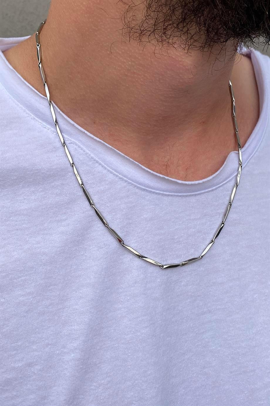 Gümüş Renk Erkek Zincir Çelik Kolye(55cm)